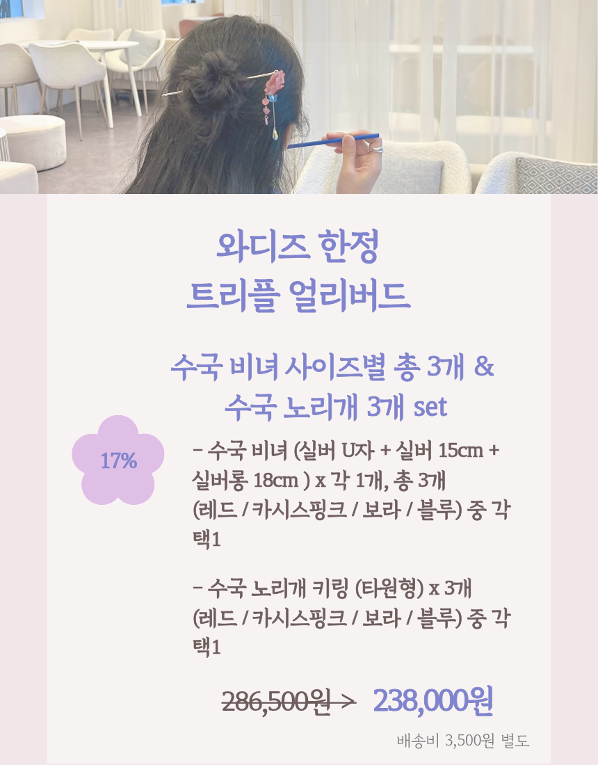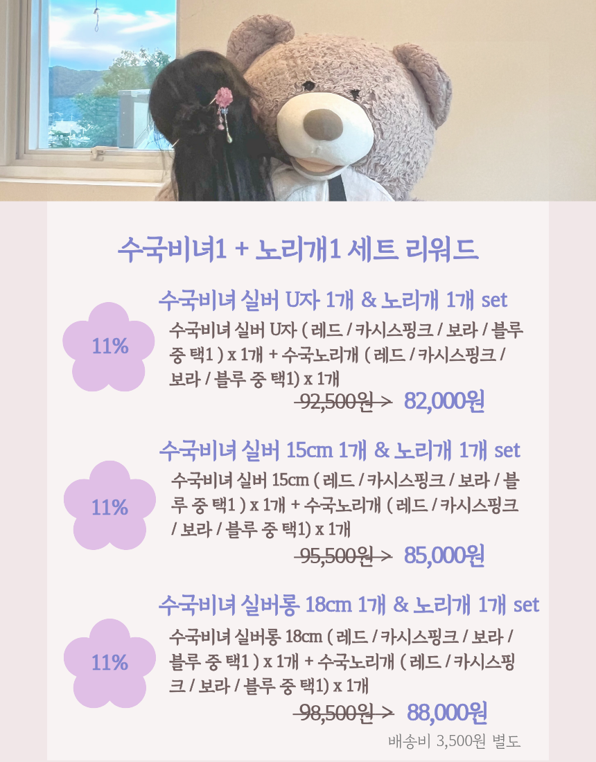 1. 원하시는 장식 + 비녀 조합으로 선택 가능