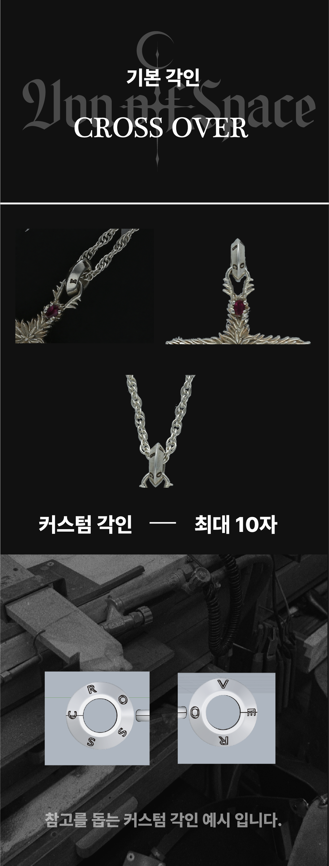 개성있는 영문 필기체와 숫자로 최대 10자까지 각인 제작이 가능하며, 당신의 우주와 개성를 상징하는 문장을 영원히 새겨드립니다.