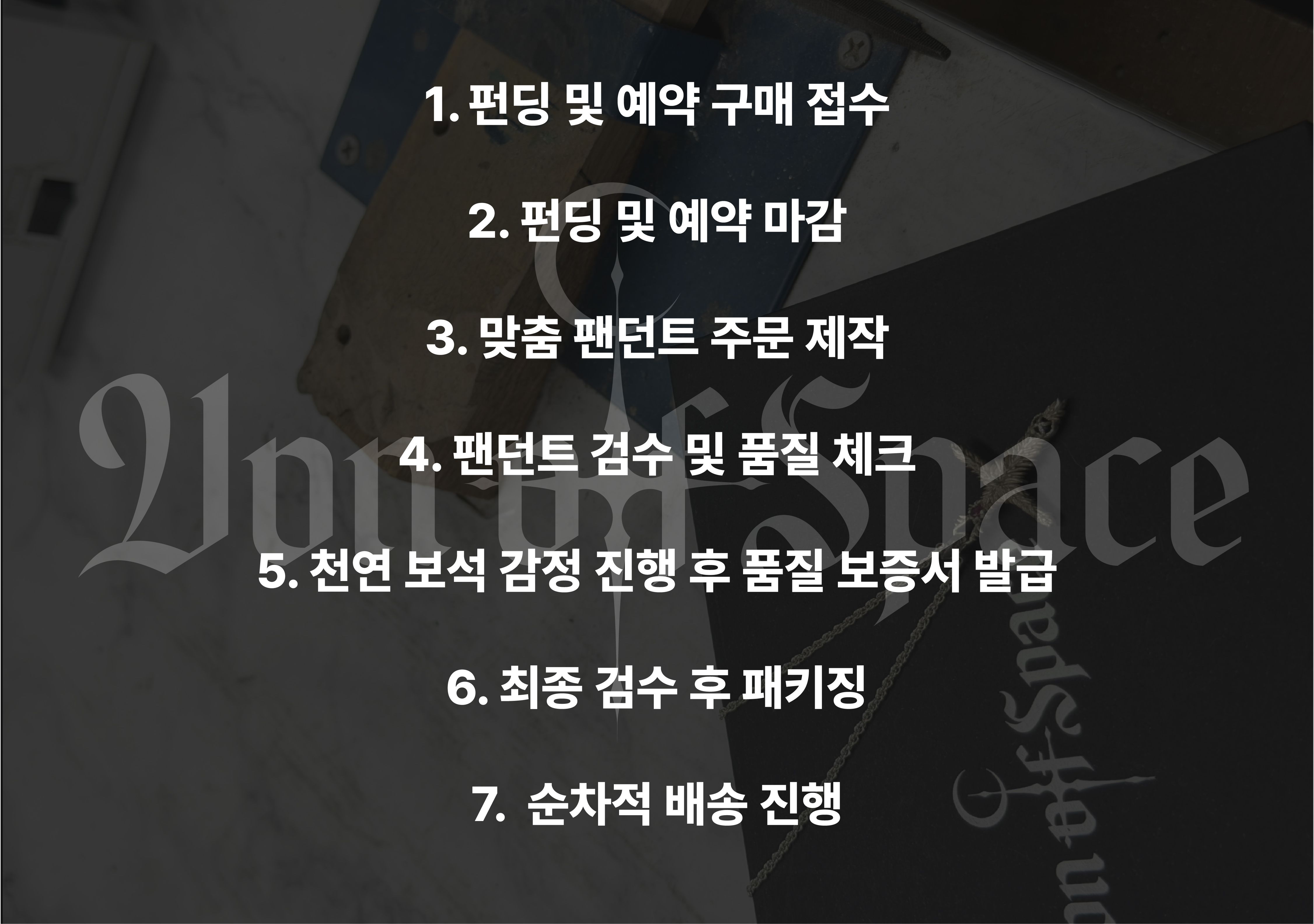 VON OF SPACE는 일반적인 대량 생산이 아닌 제품 퀄리티와 완성도를 위해 개인 주문 제작 생산 방식입니다.