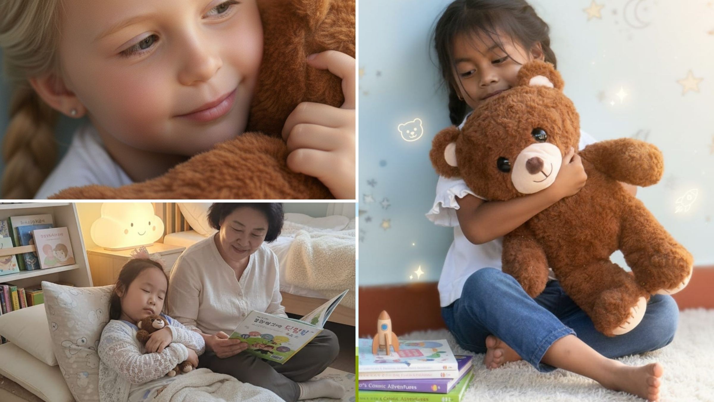 AI 기반 봉제 인형 친구가 가족의 진짜 목소리로 잠자리 동화를 들려줍니다—화면 없이, 오직 위로와 연결만을 제공합니다.