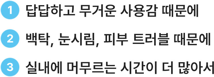 무겁고, 답답하고, 화장이 들뜨기 때문입니다.