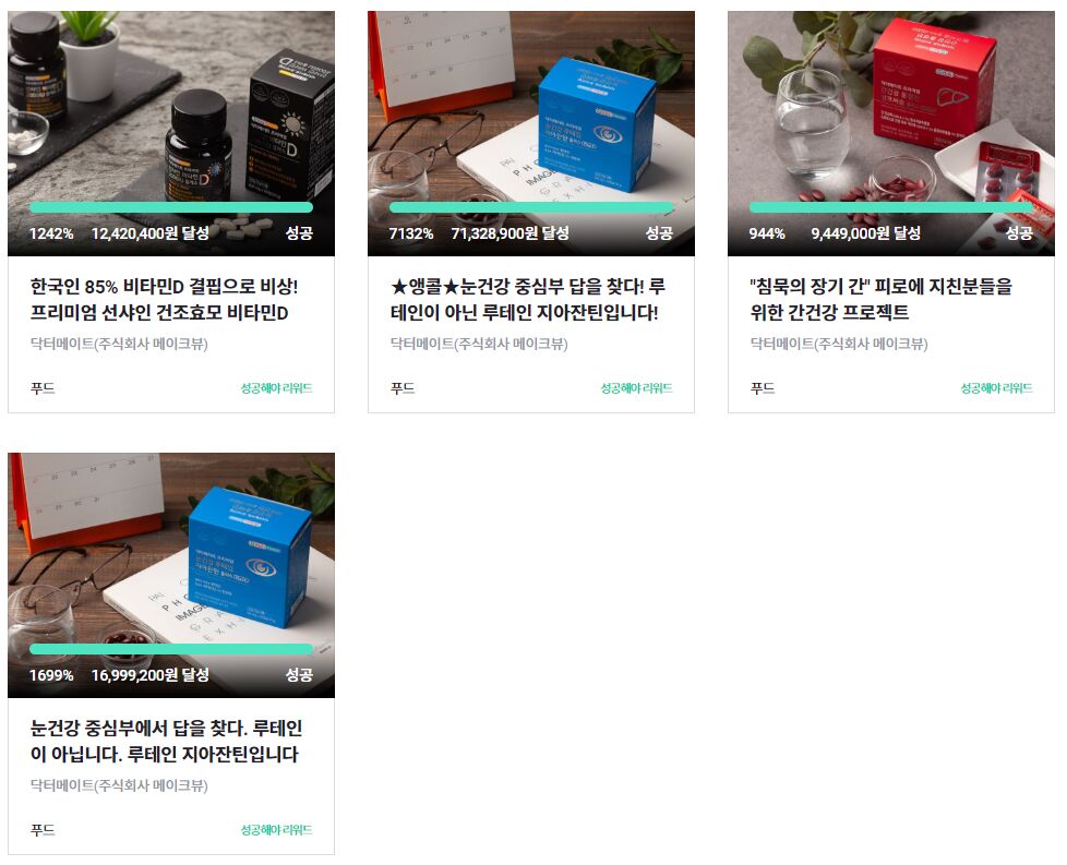 닥터메이트는 건강기능식품 전문 브랜드로 와디즈 서포터님들로부터 만들어진 대표 건강기능식품 브랜드입니다