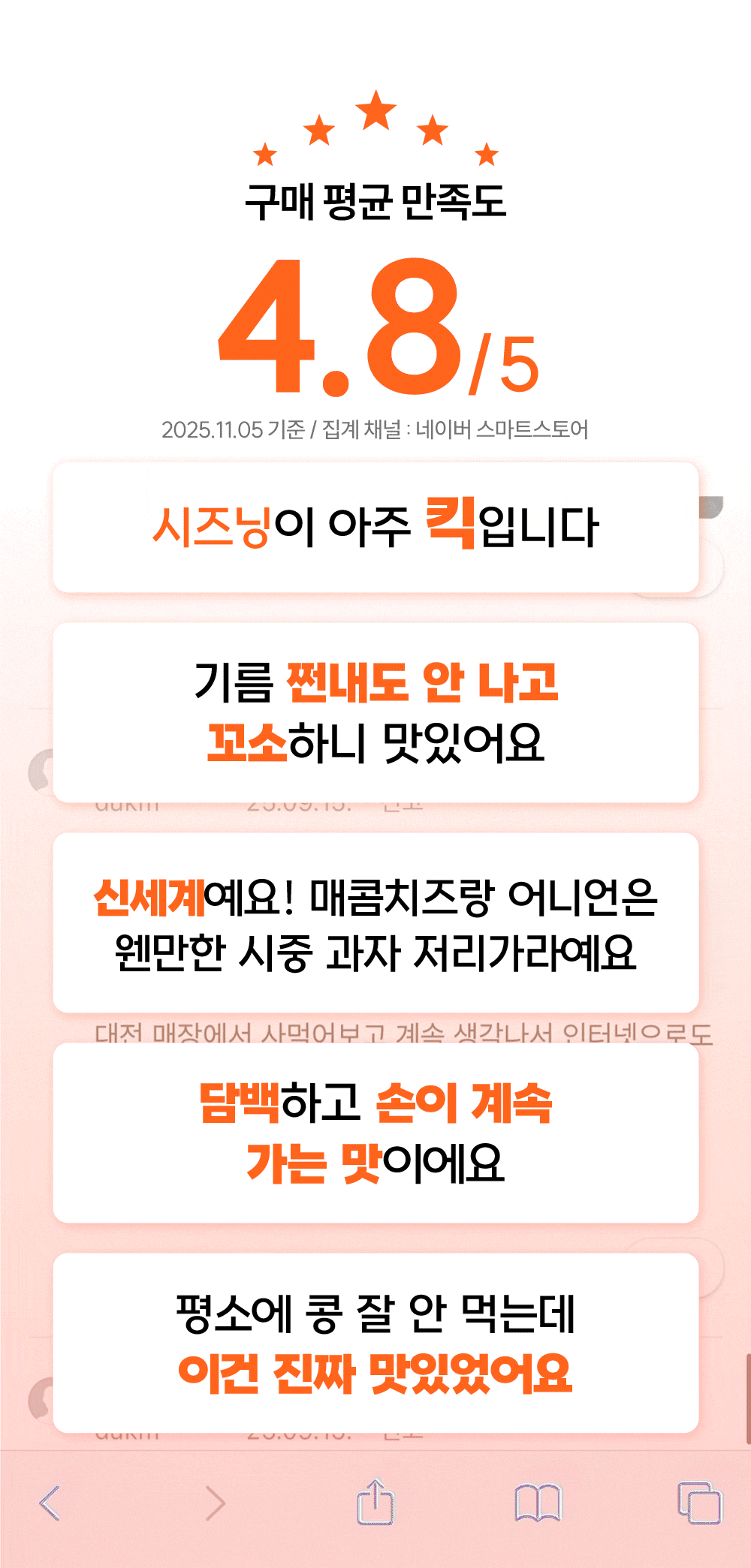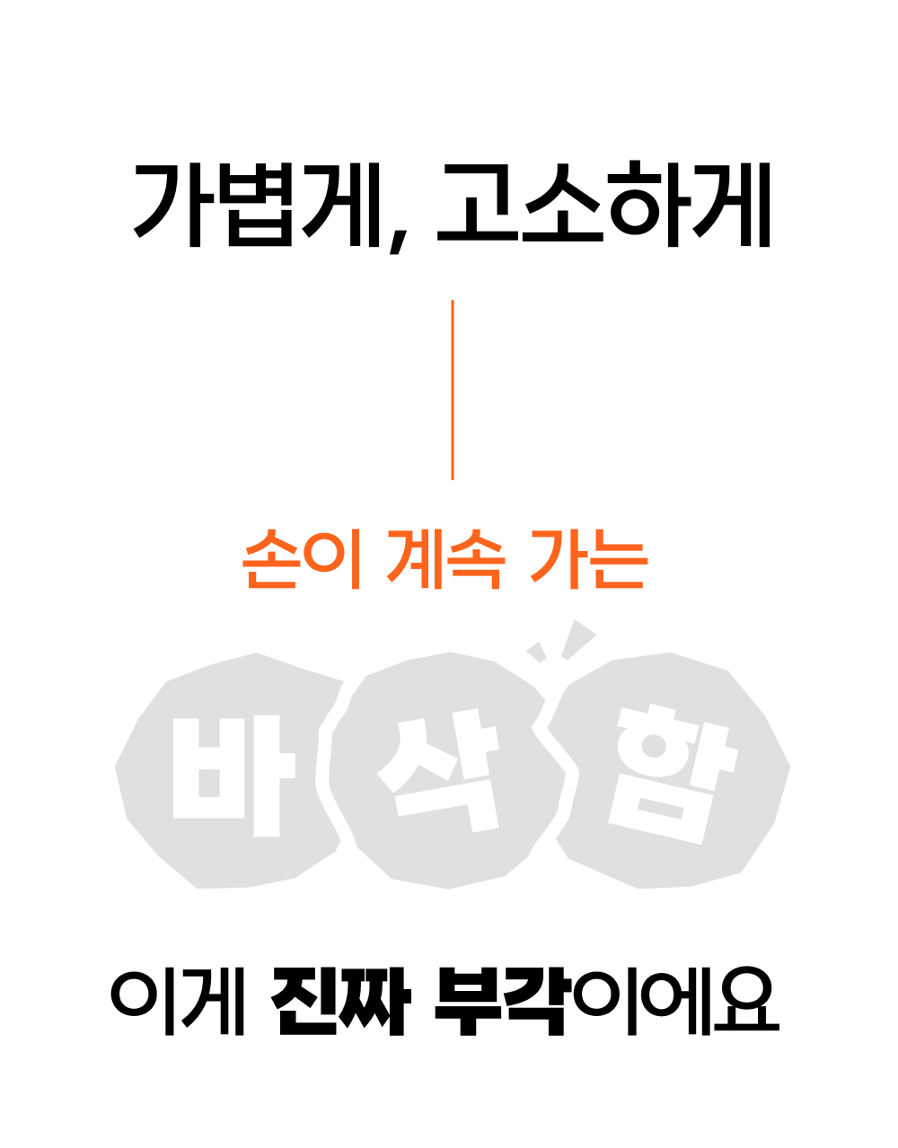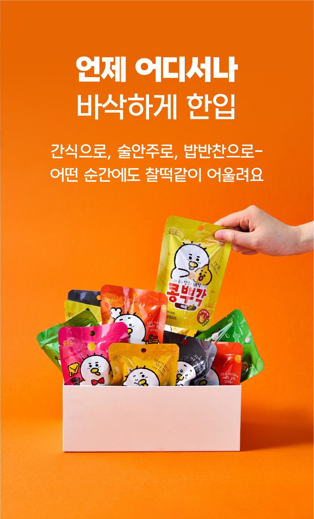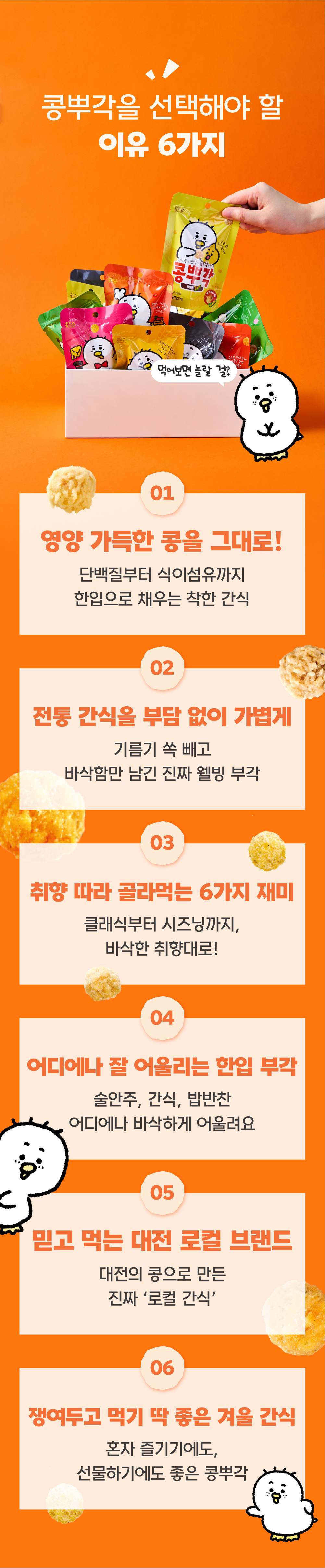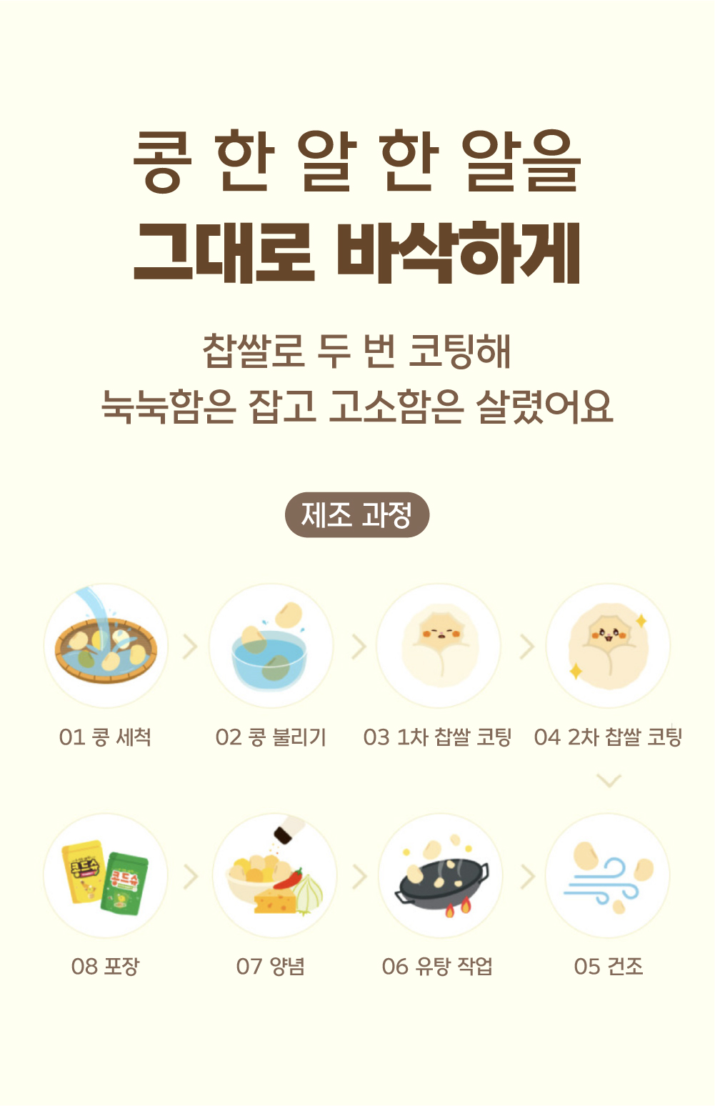 와디즈 펀딩을 선택한 이유는 단순히 제품을 판매하기 위해서가 아니라, 저희의 진심을 전하고 싶었기 때문입니다. 대전의 향토음식 ‘콩부각’을 현대적으로 되살리는 일은 단순한 제조가 아니라 세대를 잇는 마음의 기록이라 생각합니다. 와디즈는 그런 마음을 이해하고 공감해주는 사람들이 모인 공간입니다. 첫 펀딩에서 받은 응원과 관심을 바탕으로, 이번 리오더 펀딩을 통해 더 발전된 모습으로 보답하고자 합니다. 진심이 담긴 브랜드의 가치를 이어가기 위해, 다시 한 번 와디즈를 선택했습니다.