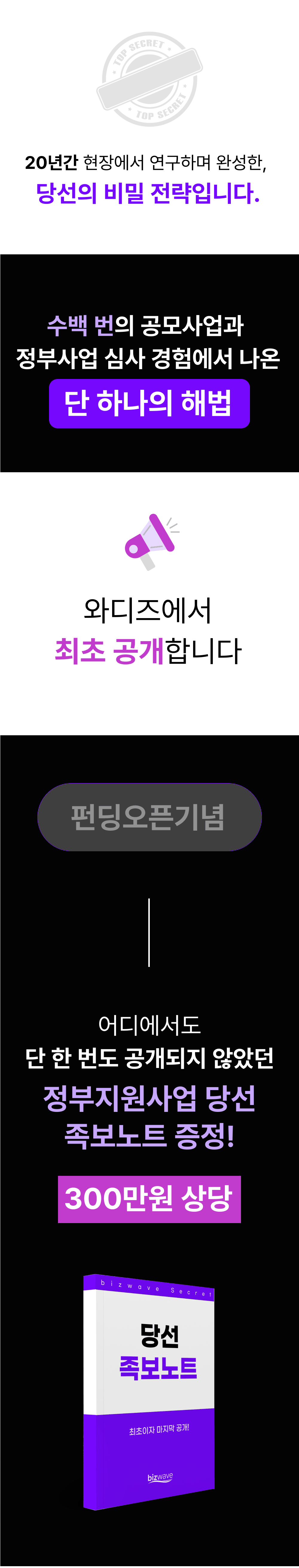 수많은 창업자, 기업가들이 간절히 기다려온 바로 그 당선 비밀 패키지!