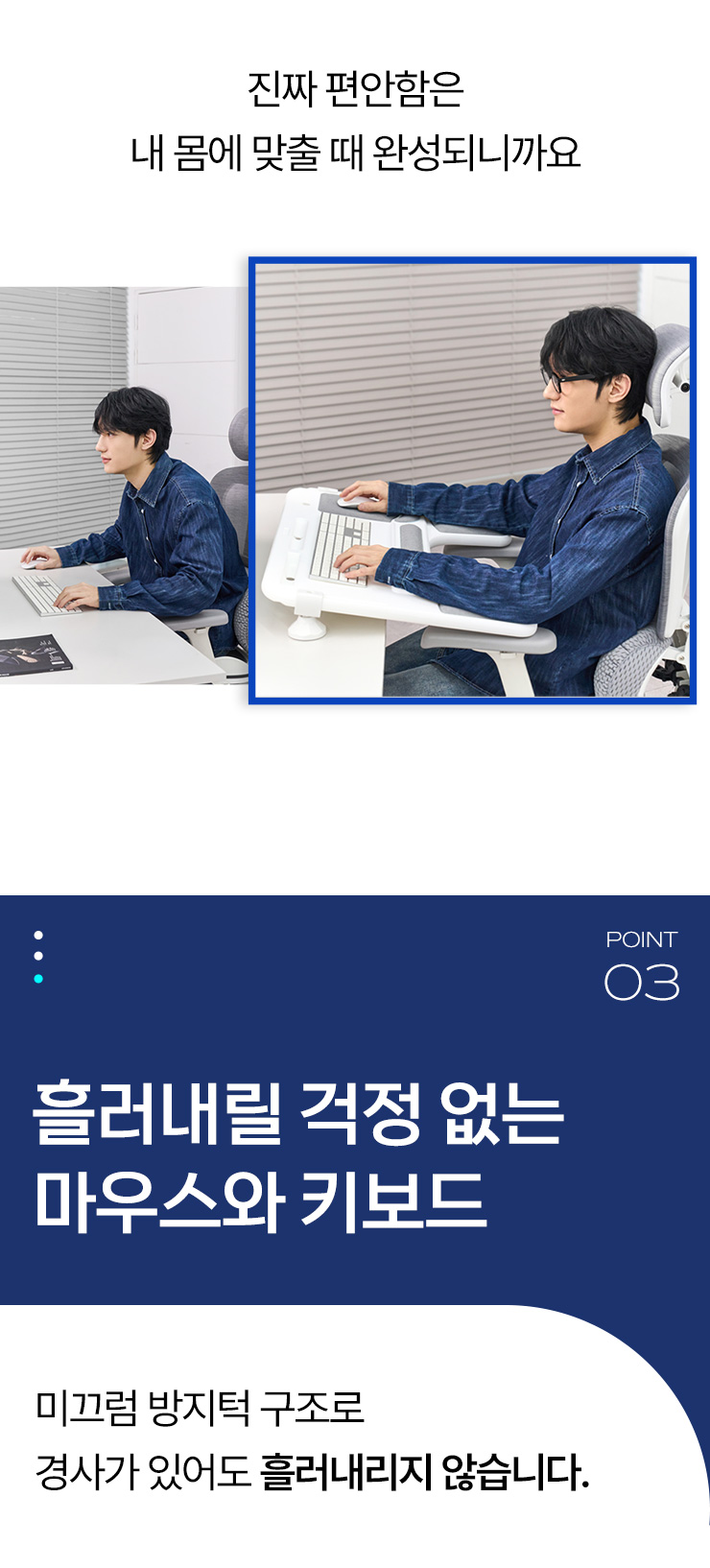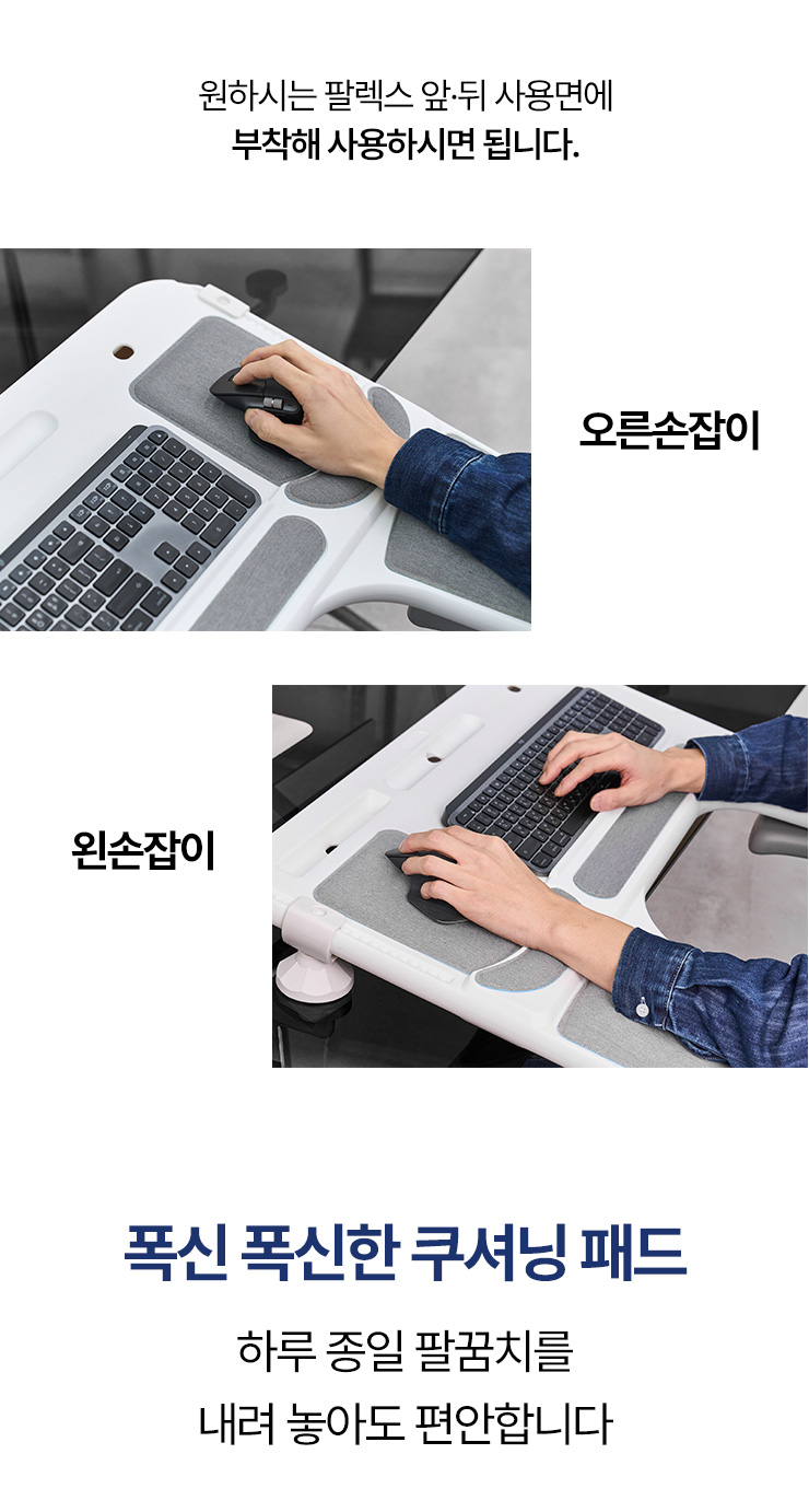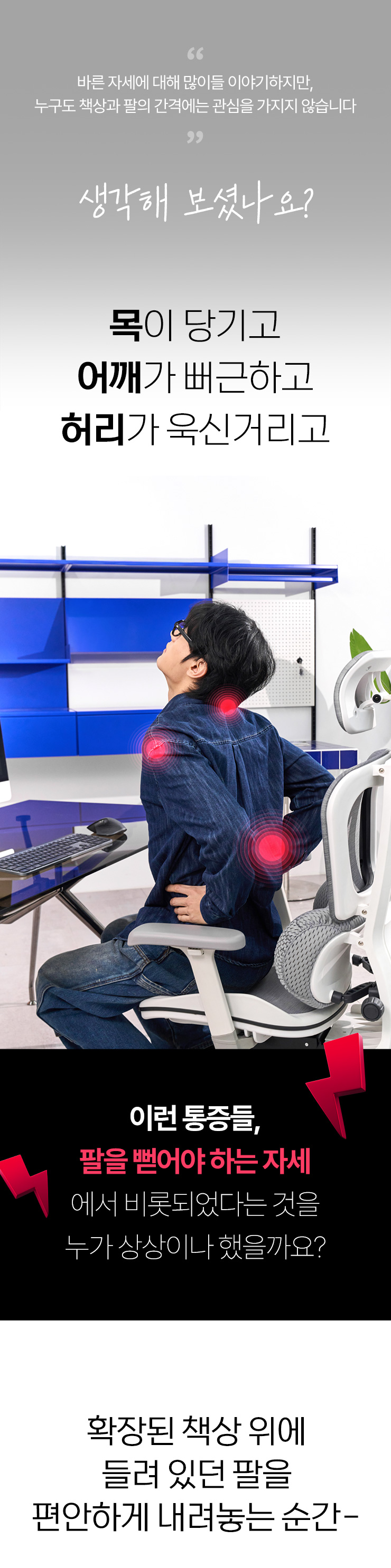 하루 종일 책상 앞에서 컴퓨터 작업을 하는 학생이나 직장인들은 팔꿈치가 허공에 뜬 상태로 키보드나 마우스를 사용하곤 합니다. 이로 인해 아무리 좋은 의자에 앉더라도 목과 어깨의 긴장, 거북목, 허리 통증 등이 발생하기 쉽습니다.