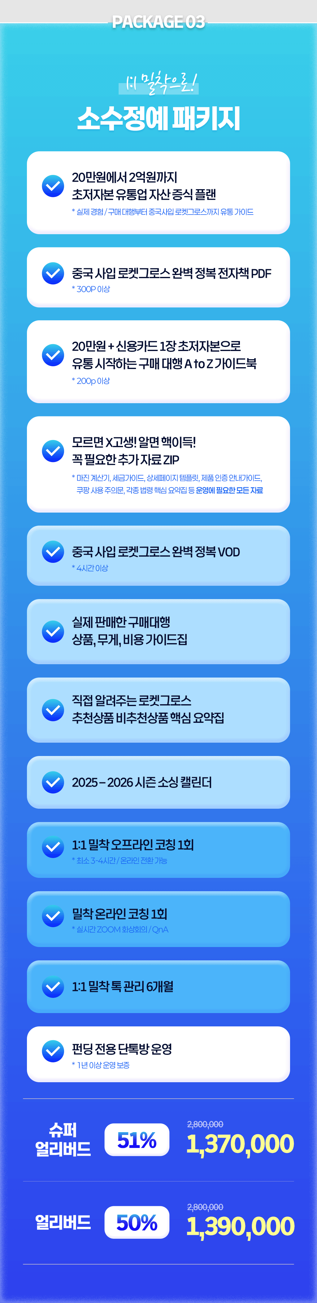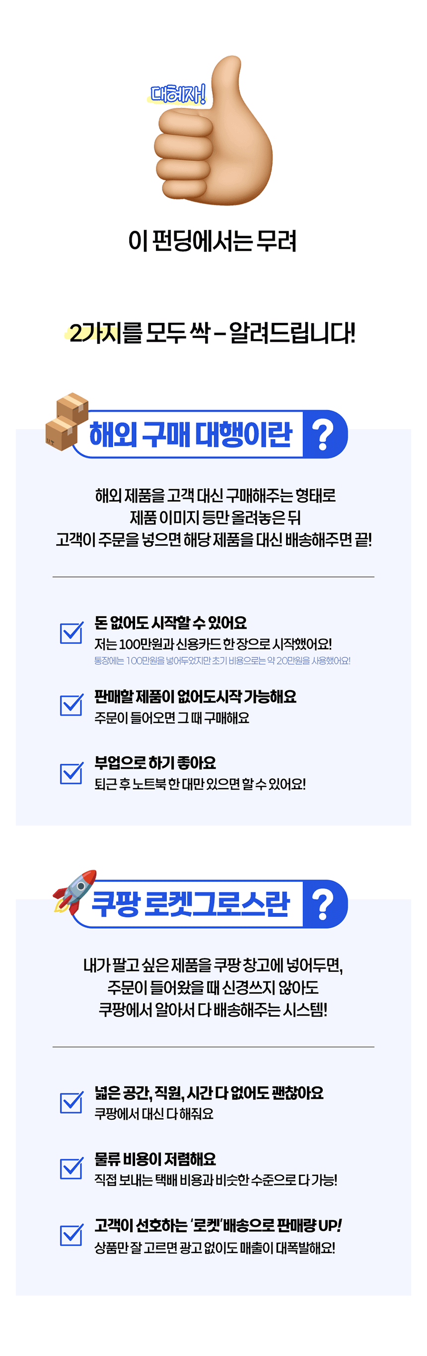 ㄴ 해외구매대행 + 로켓그로스 모두 알려주는 정말 혜자로운 가격의 펀딩이에요! 둘 중 한가지 주제의 전자책과 자료들만으로도 10만원 20만원대에 판매되고 있는데 지금 이 펀딩은 두 가지 모두 알려주는데다가 VOD 영상 강의까지 포함되어 있죠!