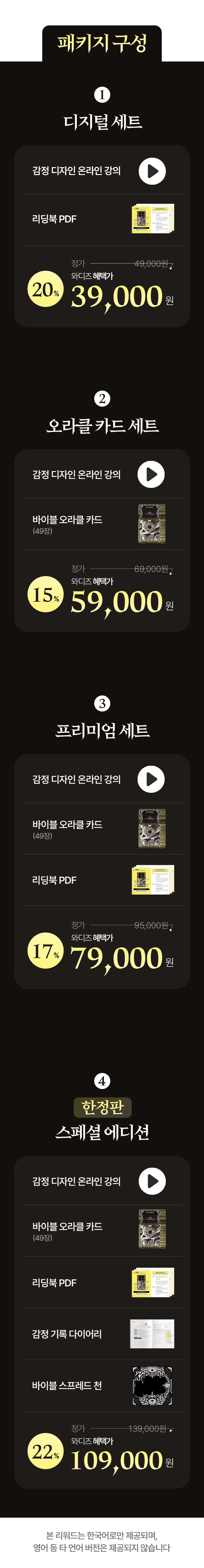 A. 본 프로젝트는 와디즈 단독 펀딩입니다. 바이블 오라클 카드 및 감정 디자인 강의는 이번 펀딩 이후 별도 판매 계획이 없습니다. 즉, 이번이 유일한 기회입니다.