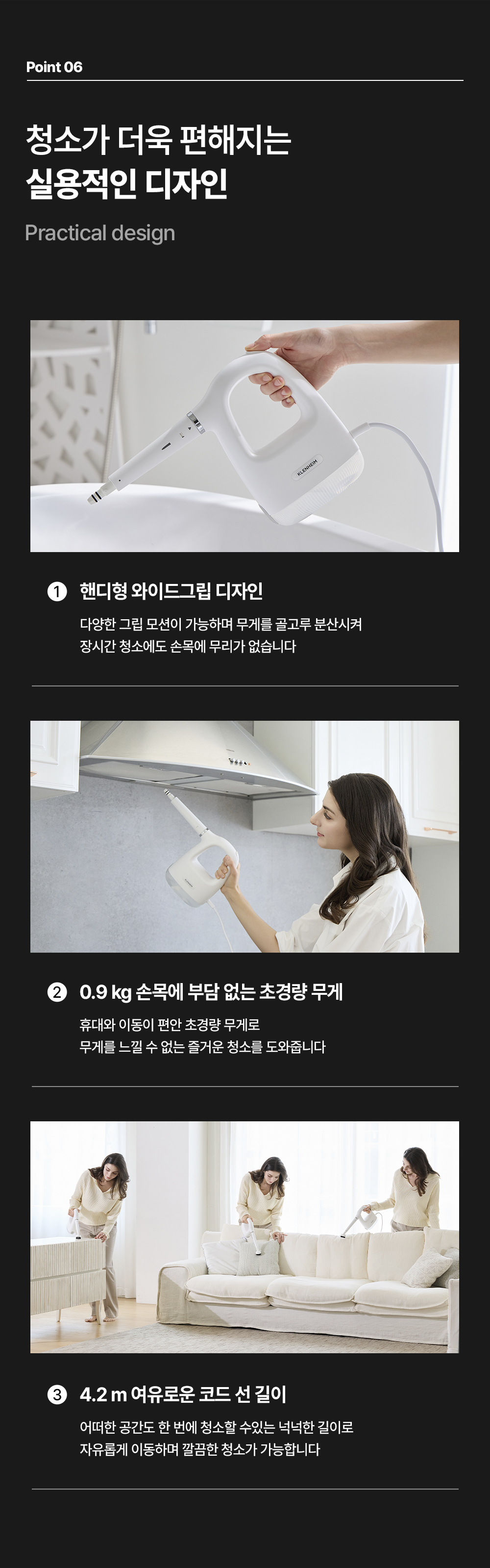 청소기 꺼내는 게 귀찮을 틈 없이 매일 부담 없이 사용할 수 있도록 만들었습니다.
