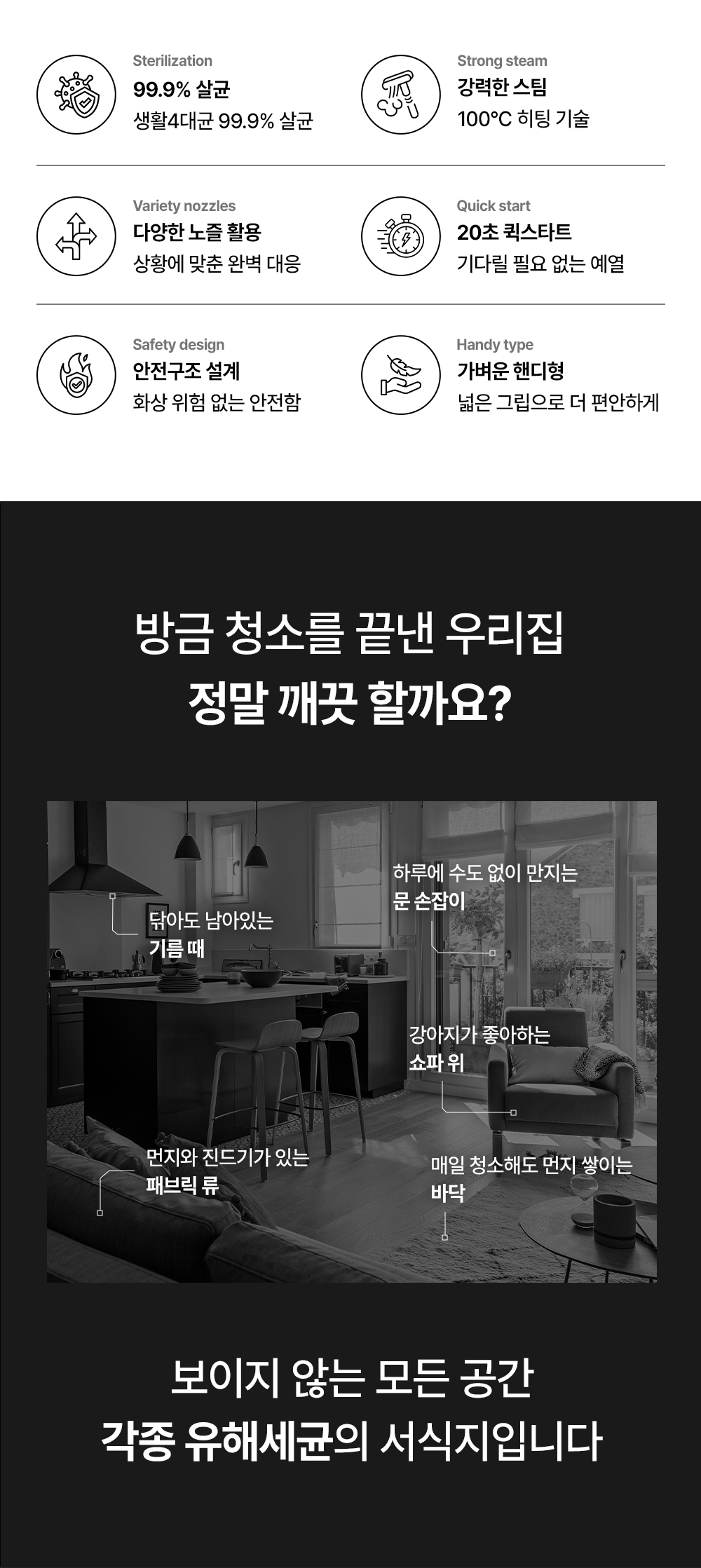 뜨거운 고온 스팀으로 바닥은 물론 세균까지 한 번에!