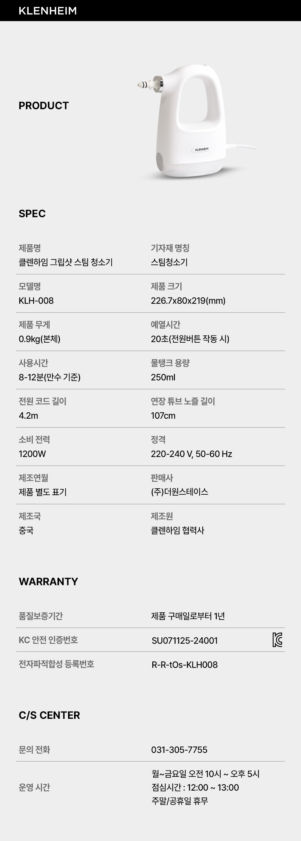 클렌하임 그립샷 스팀청소기가 탄생했습니다.