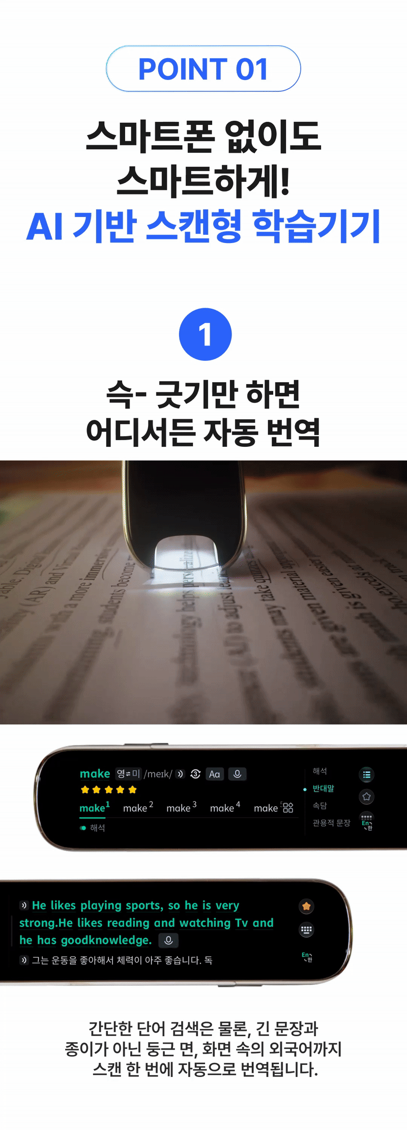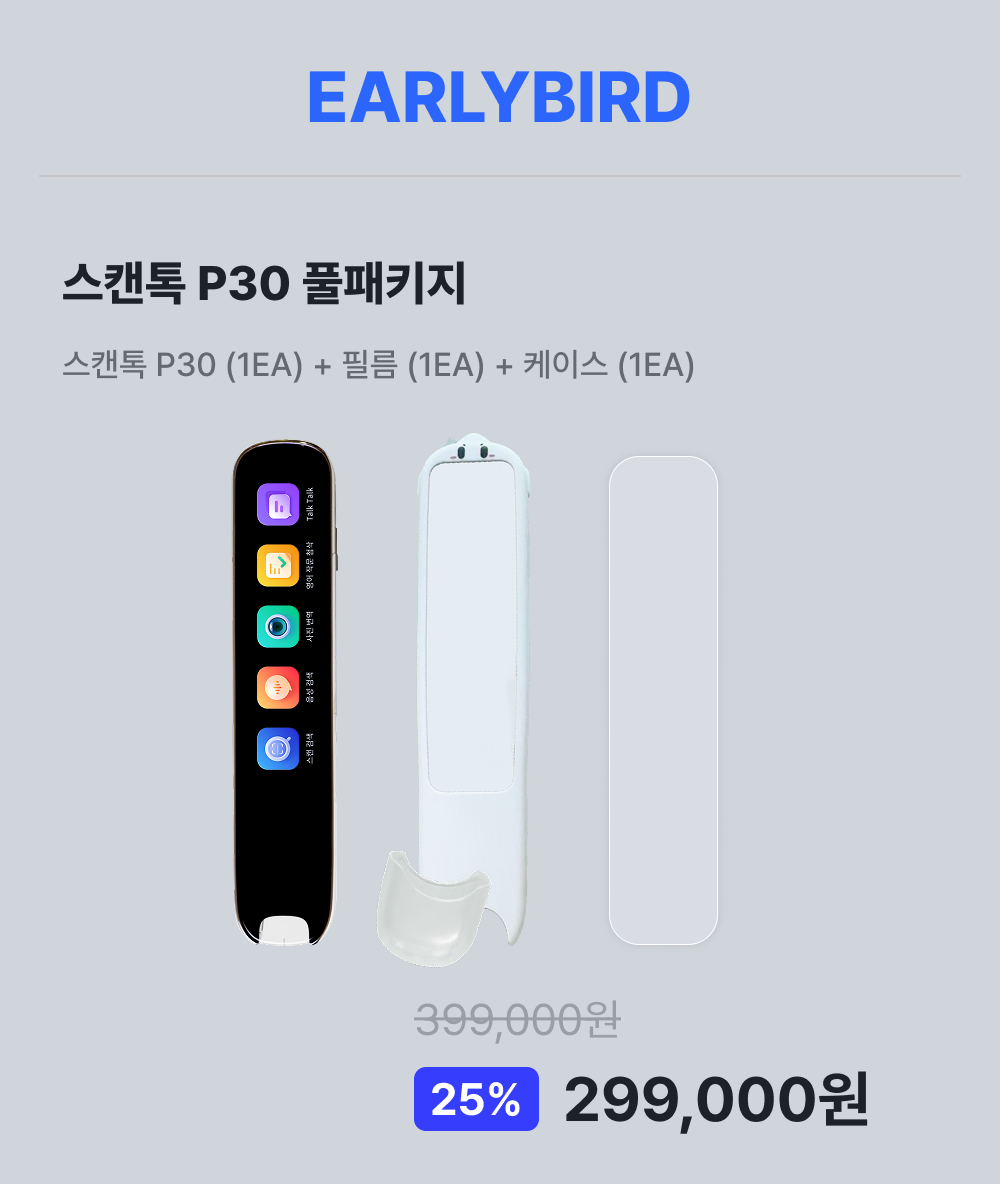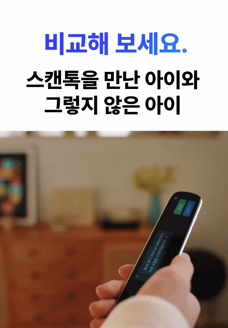 스마트폰 없이도 슥- 스캔하고 찰칵 찍으면 단어 검색부터 자동 번역까지! 1:1 대화를 통해 스피킹 연습도 가능한 맘카페 품절 대란템 스캔톡, 더 업그레이드되어 전세계 최초 공개