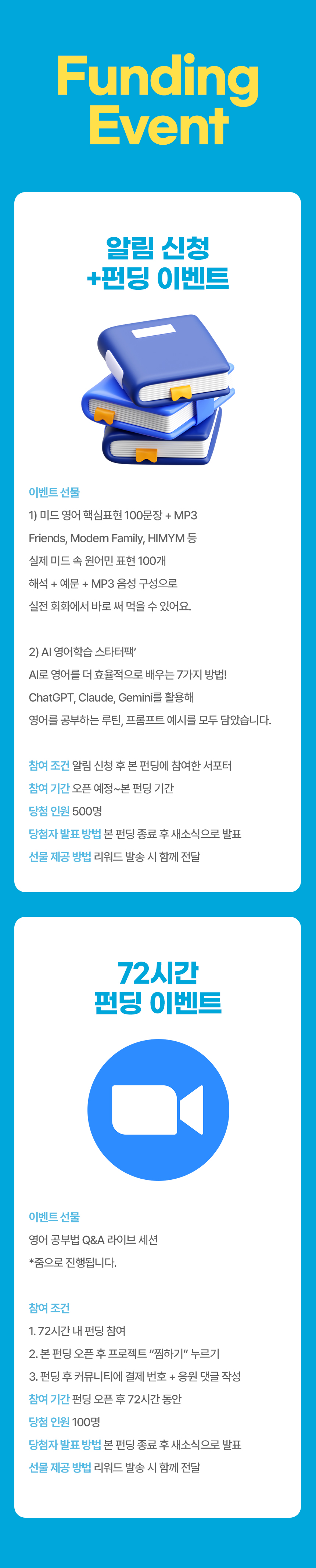 이번 펀딩을 통해 많은 학습자들이 더 쉽고, 더 몰입감 있게 영어를 공부할 수 있도록 돕겠습니다.