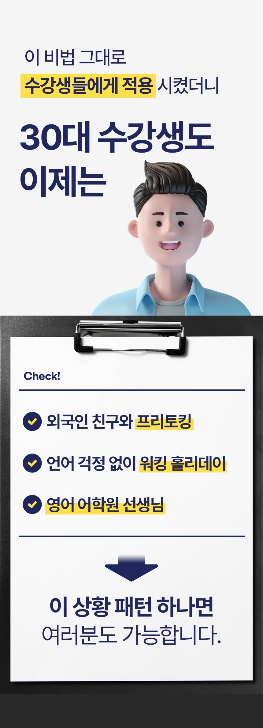 더 이상 영어를 위한 인생을 살지 마세요. 인생을 위한 영어를 공부하세요.”
