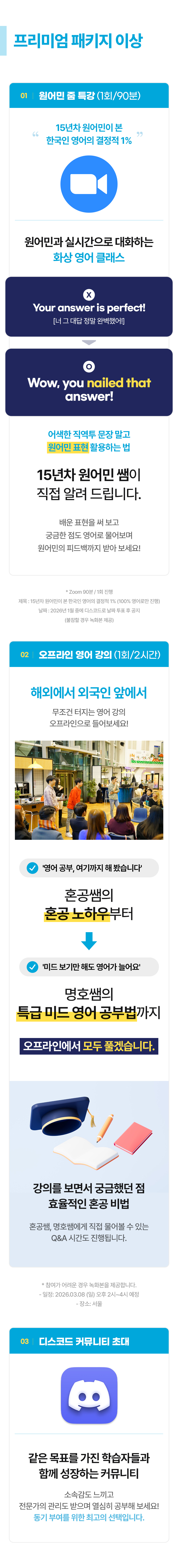 신뢰할 수 있는 교육 커뮤니티를 통해, 학습자들이 미래 역량을 갖춘 어른으로 성장할 수 있도록 돕는 것이 저의 사명입니다. '정답 맞히기'보다 '진짜 삶에 쓰이는 배움'을 고민합니다. 스펙보다는 실행을, 암기보다는 표현을, 이론보다는 결과가 나오는 학습 경험을 제공합니다. 그래서 영어도, 회화도, 리딩도 스스로 말하고 써 보는 경험 중심으로 구성했습니다.