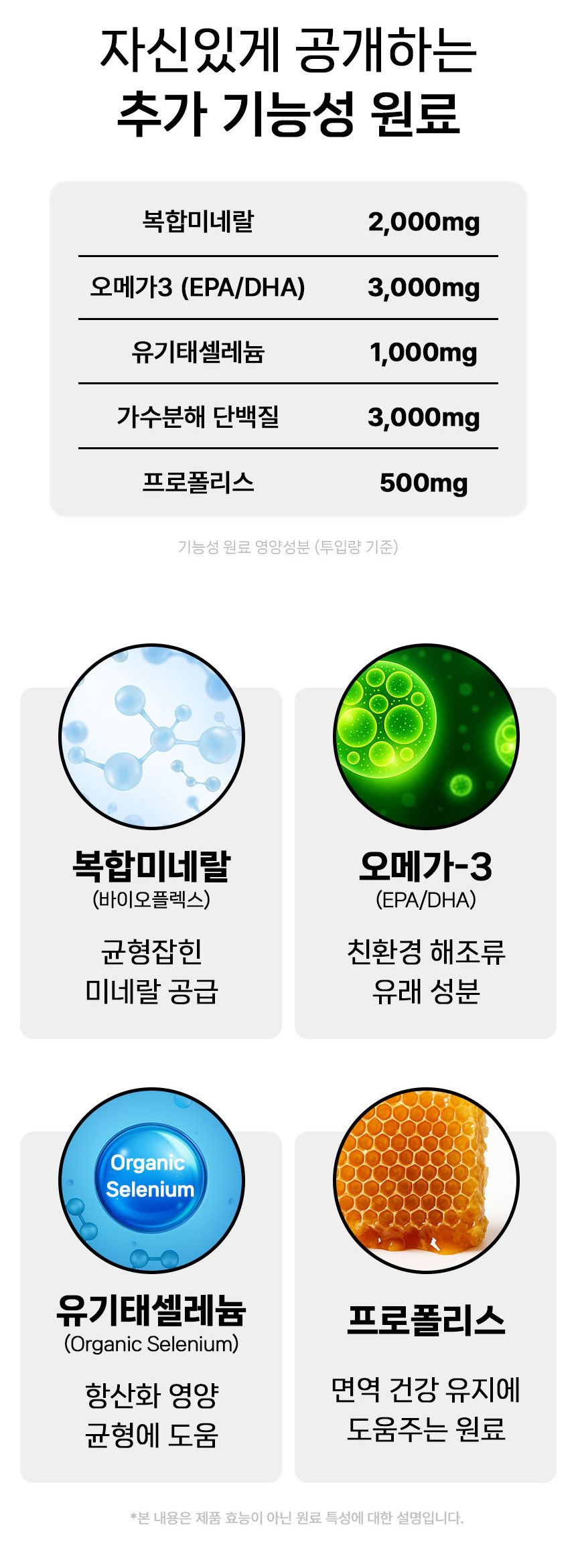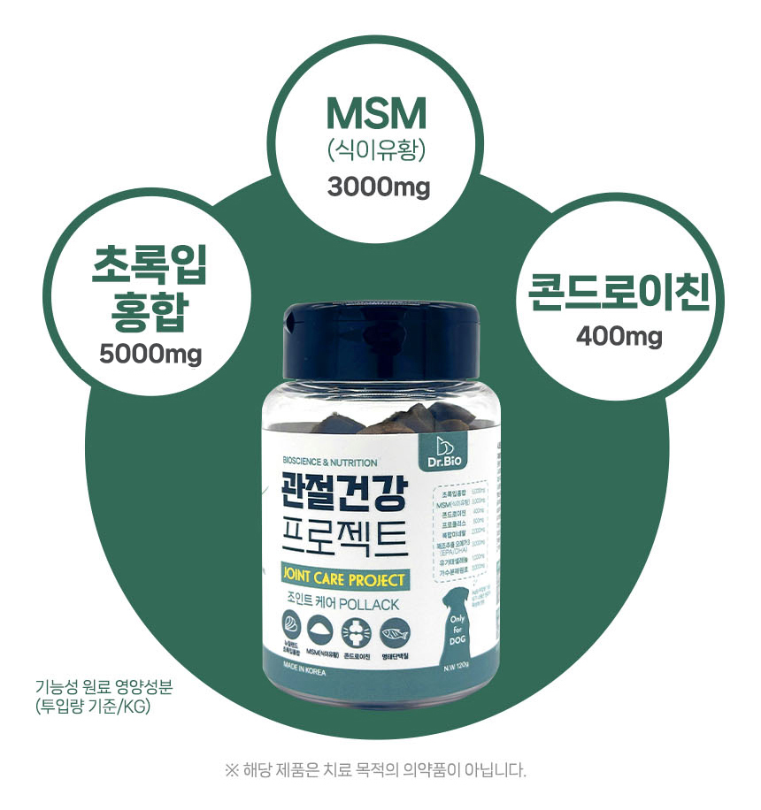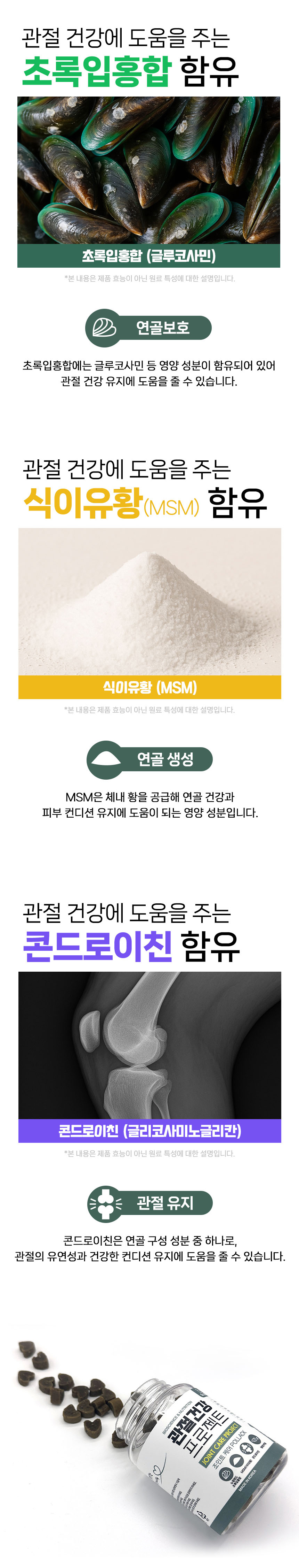 초록입홍합, MSM, 콘드로이친, 명태 단백질 등