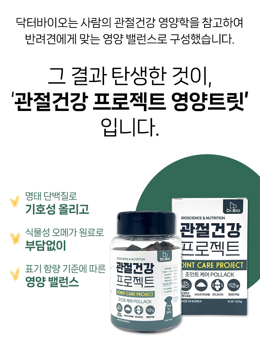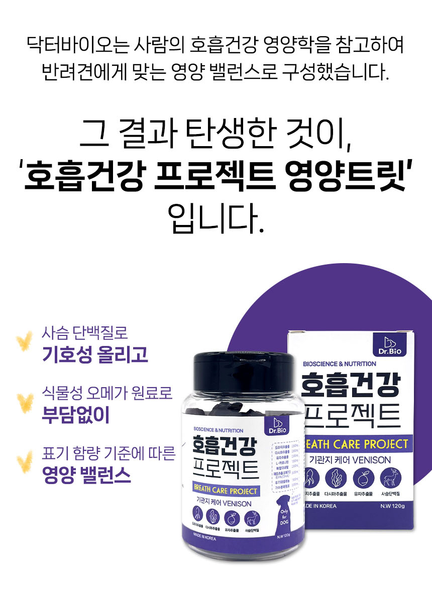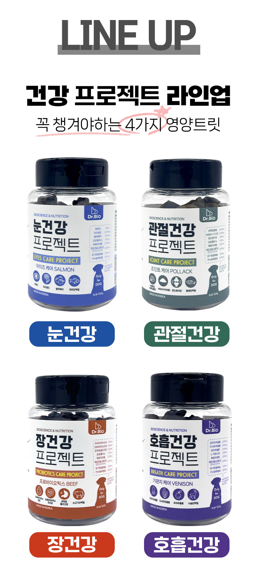 사람 영양학을 기반으로 반려견을 위한 기능별 영양트릿 시리즈를 개발했습니다.