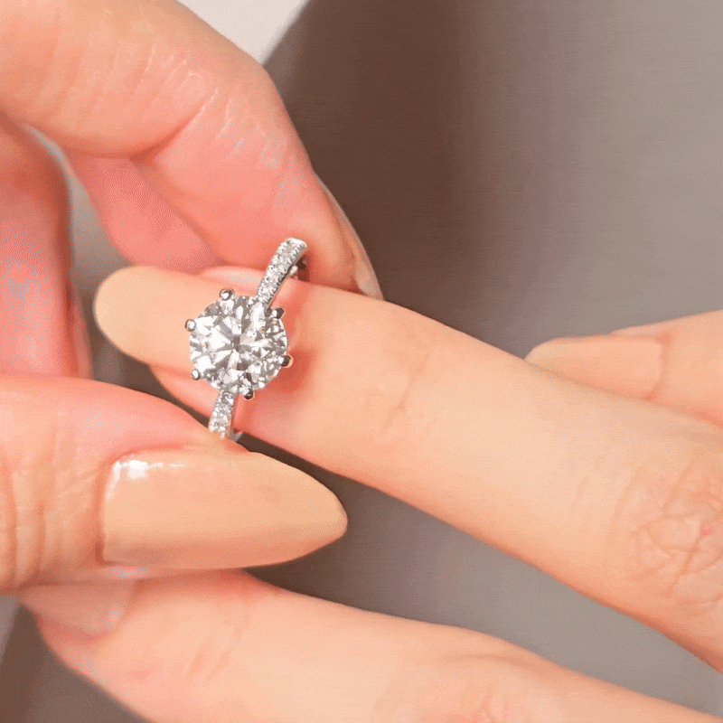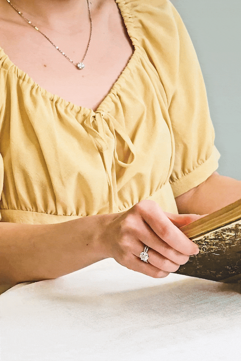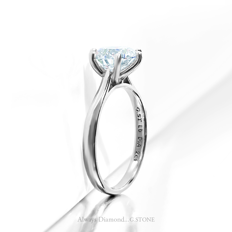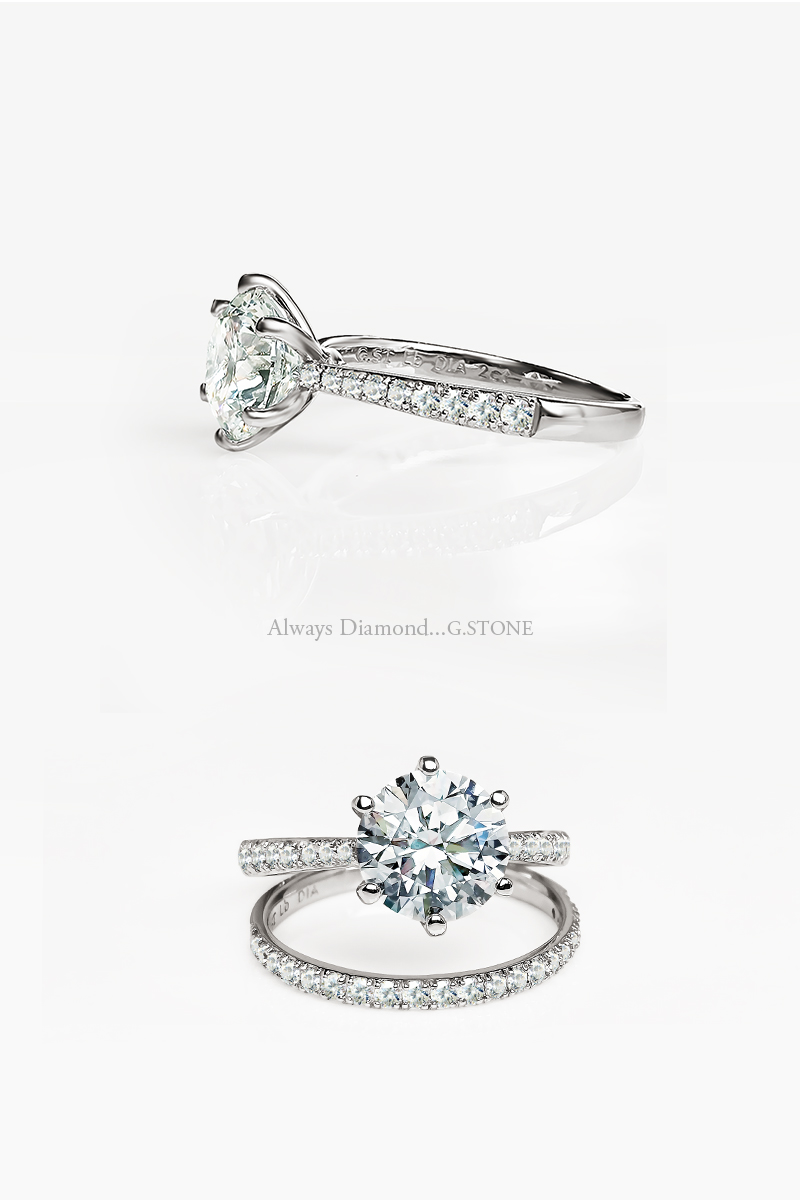 웅장한 2캐럿 다이아몬드가 세팅되지만, 최소 높이에 간결한 형태로 제작되어 일상에서도 편안하게 착용하실 수 있어요