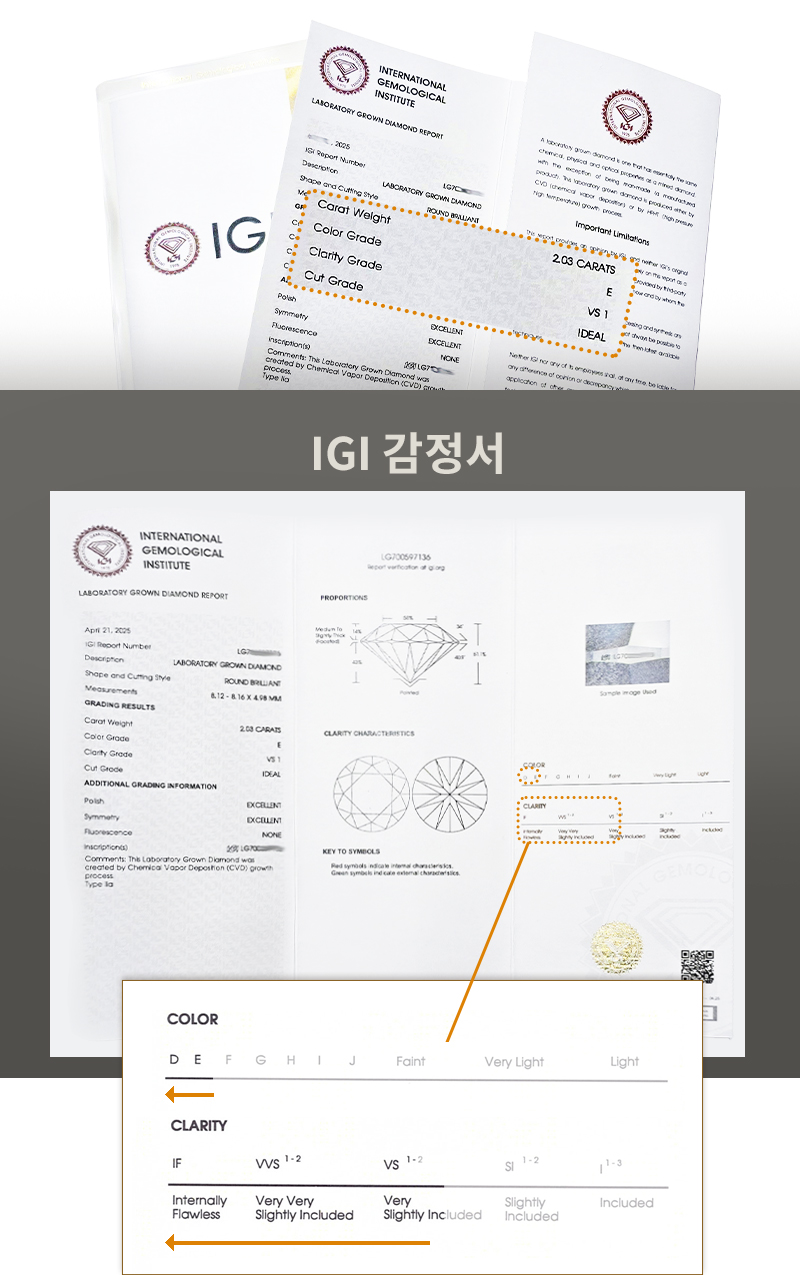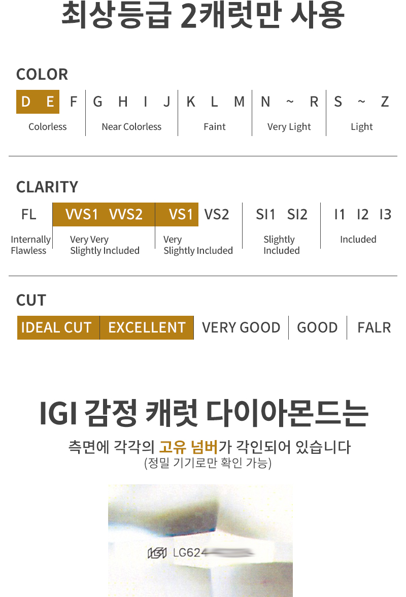 세계적 명성의 IGI감정원 최상급 다이아몬드만을 엄선함은 물론이고
