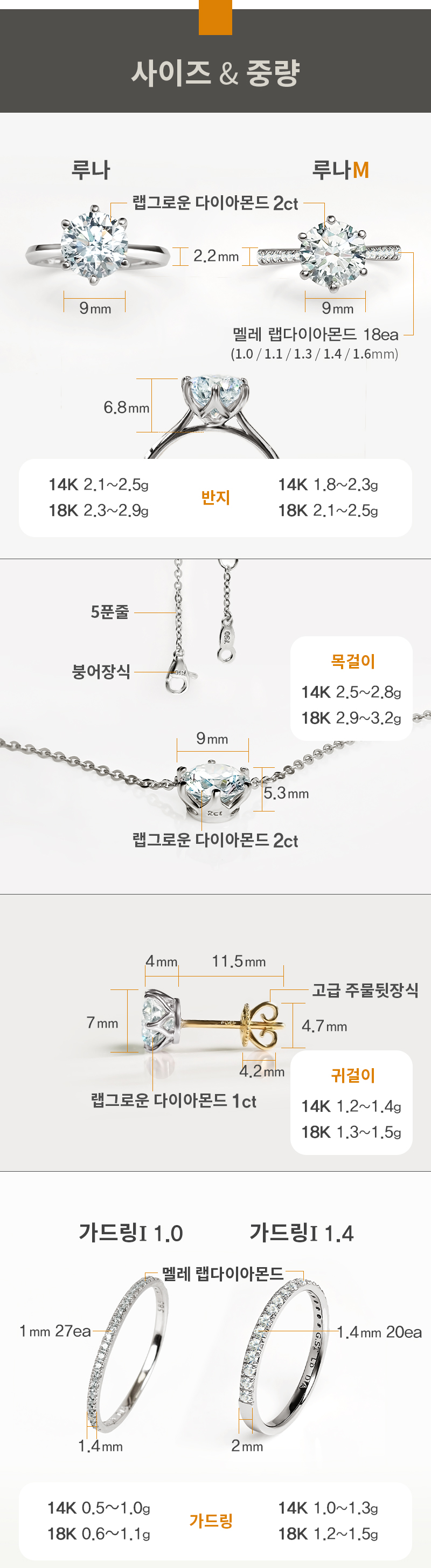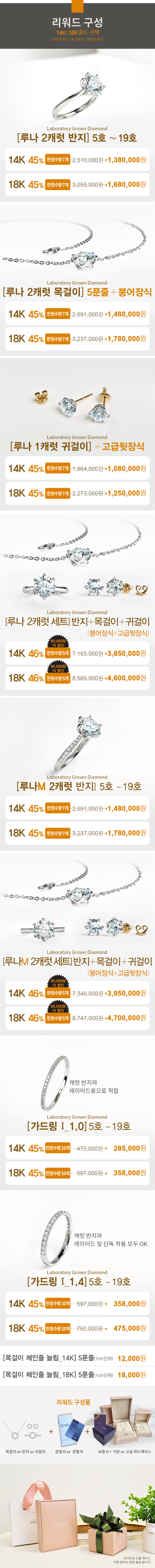 1) 표준 규격에 맞는 실버/14K/18K골드 및 명시한 다이아몬드로만 제작합니다