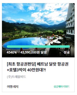 와디즈 펀딩 금액은 전세기 항공권 및 호텔비용 지불에 사용될 예정입니다.
