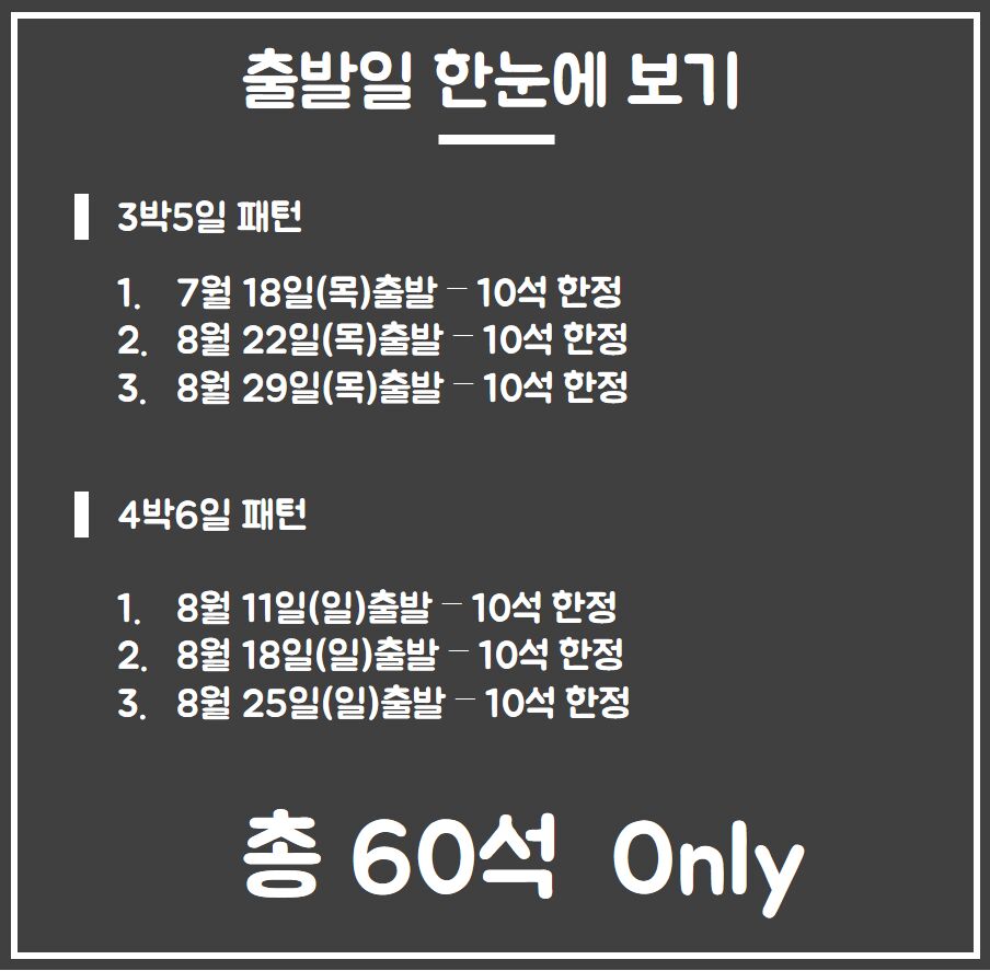 (*10인 기준 12인승 차량 1대가 제공되며 인원이 적은 출발일엔 승용차로 대체될 수 있습니다^^)