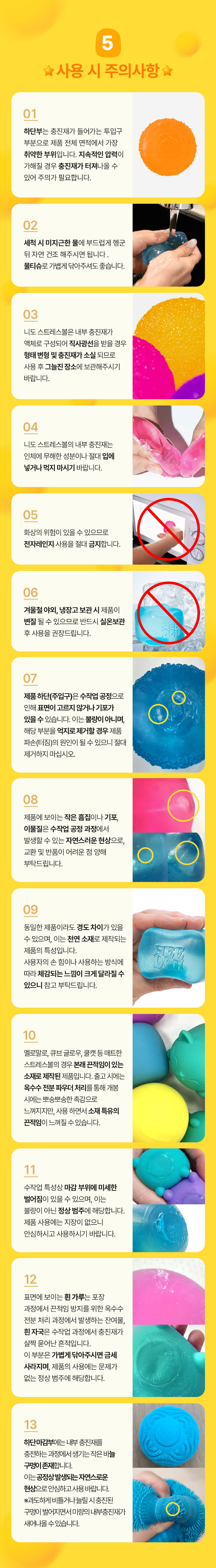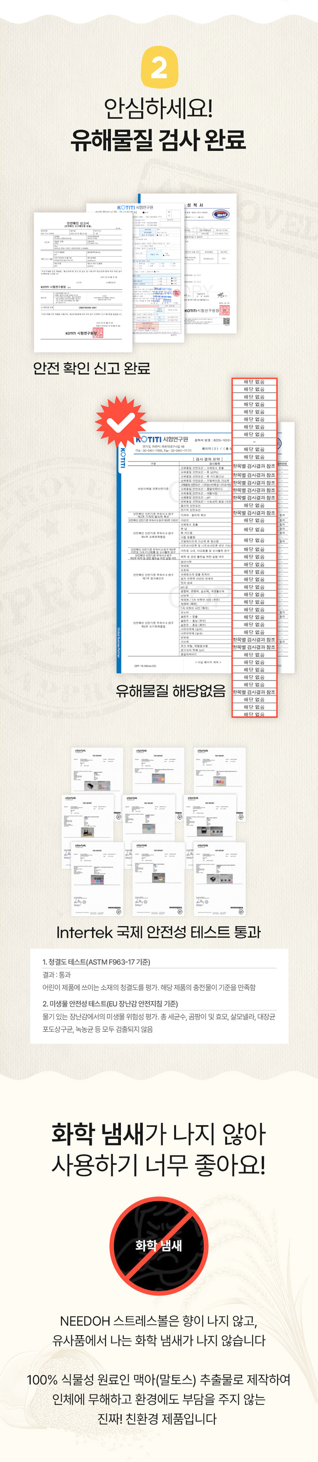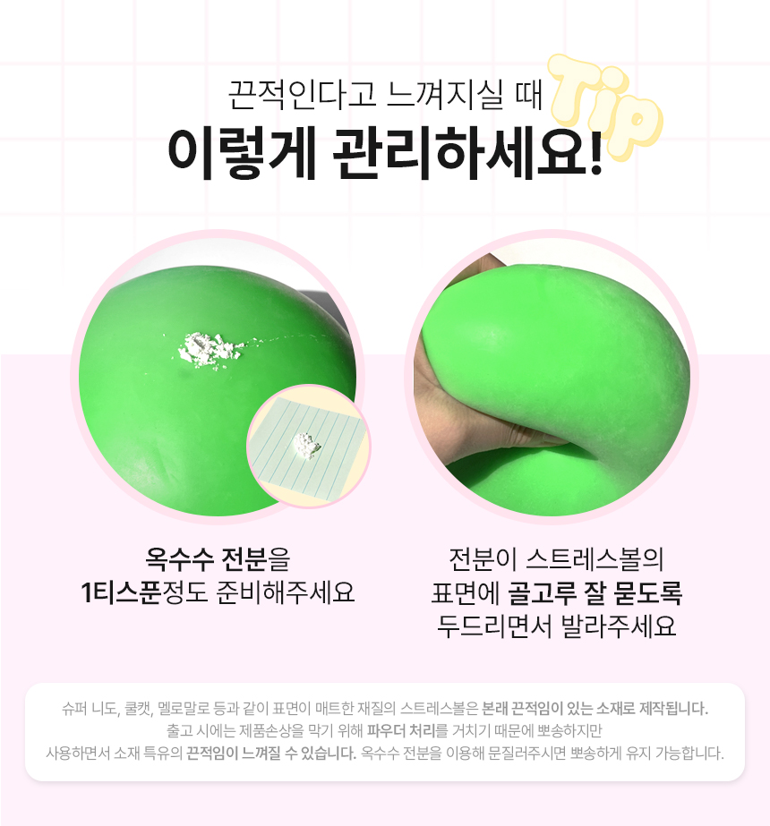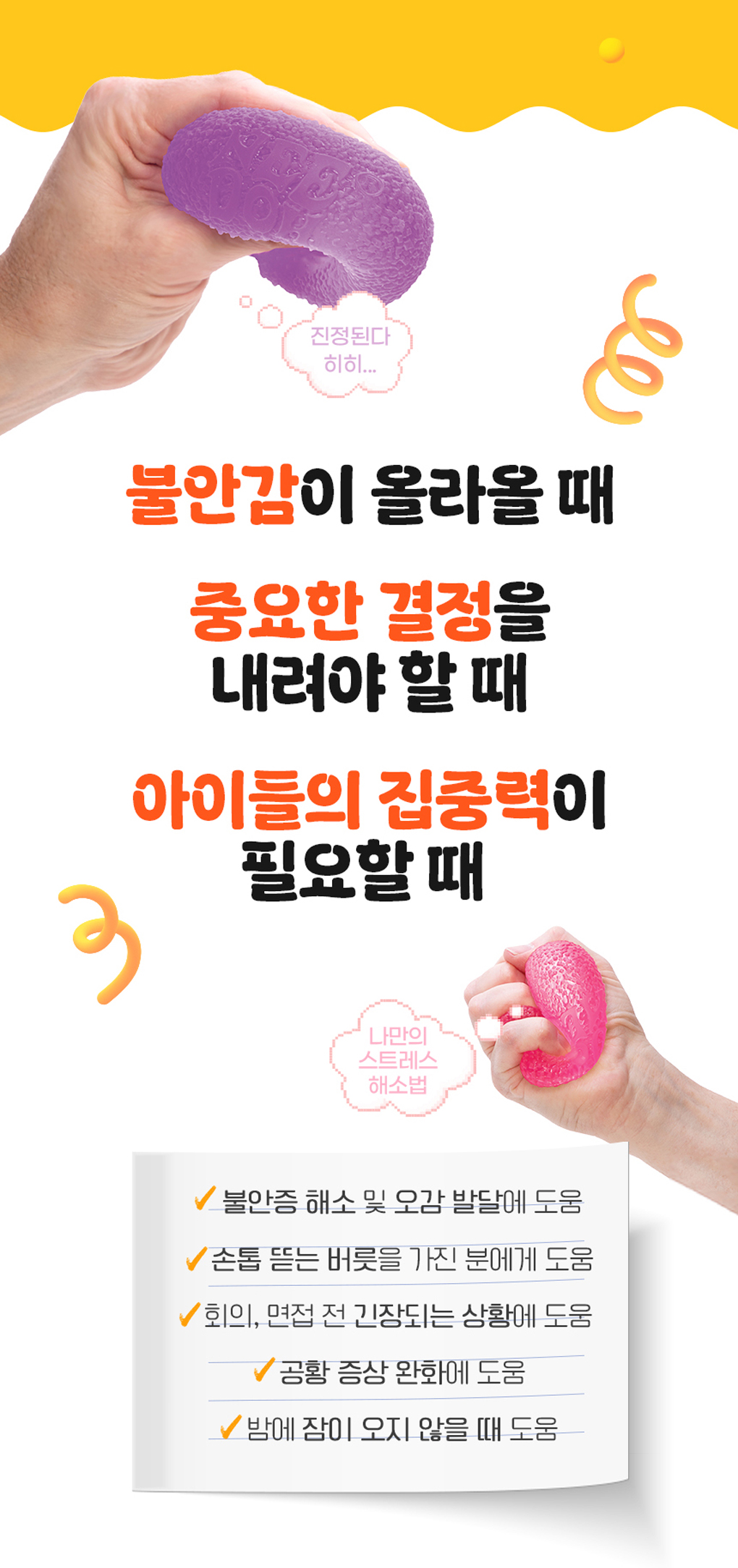 대부분의 스트레스볼(말랑이, 젤리공 등)은 PVC 소재로 만들어져 저렴하고 튼튼하지만, 미세플라스틱 문제로 인체와 환경에 유해할 수 있는 우려가 있습니다.