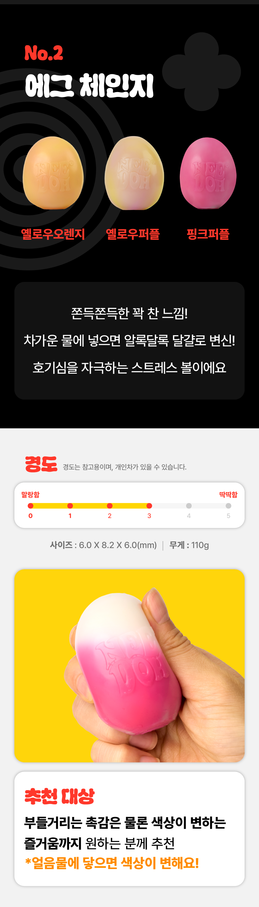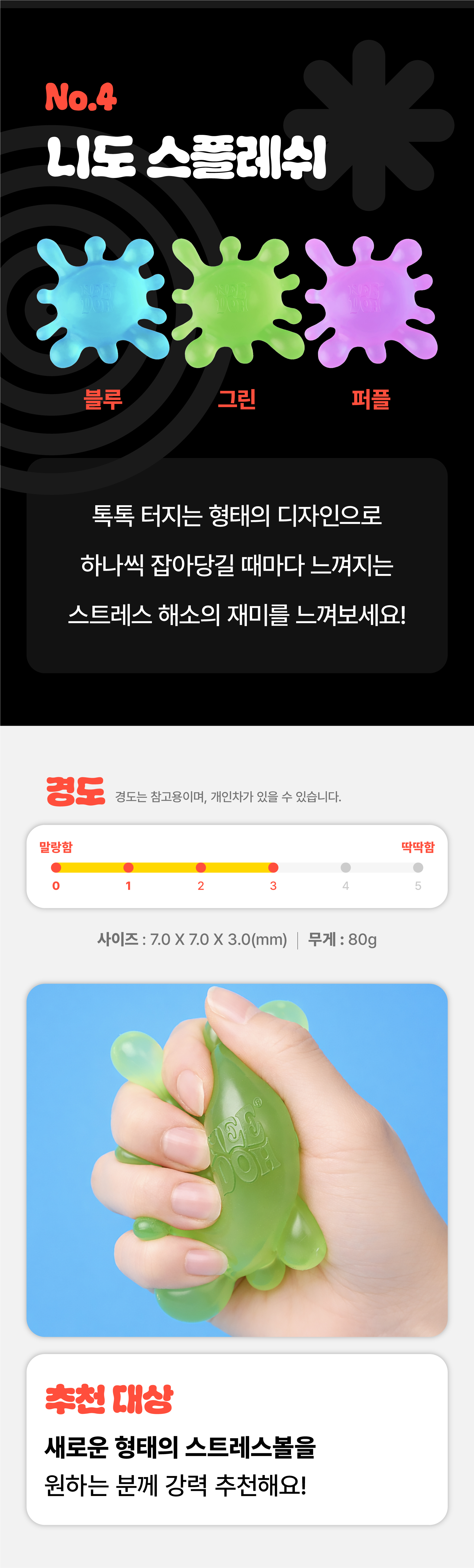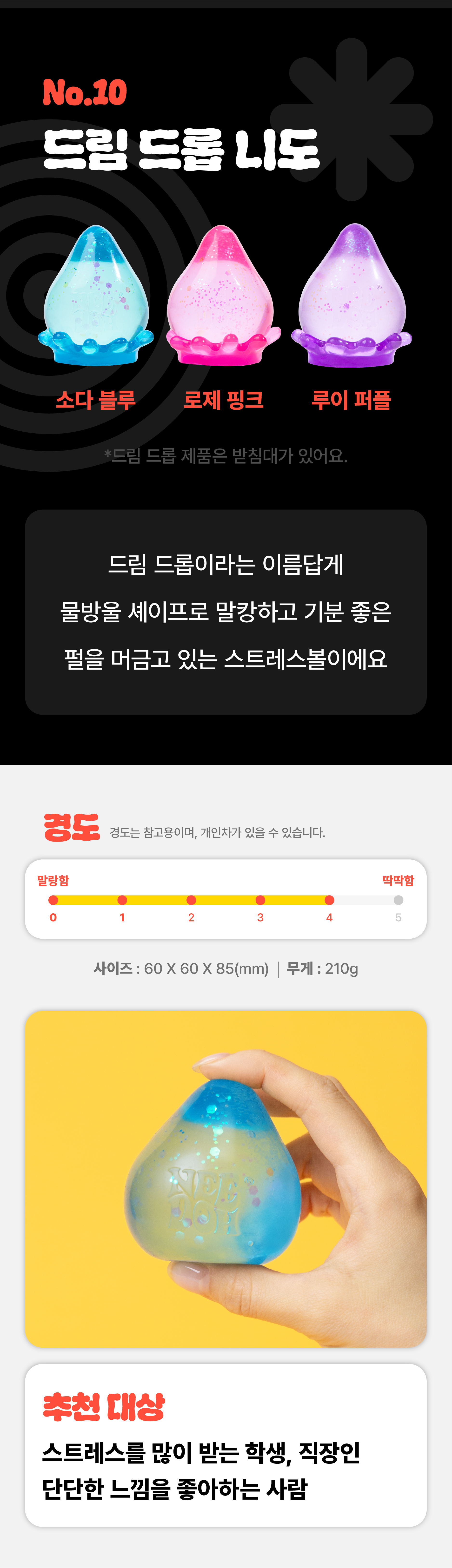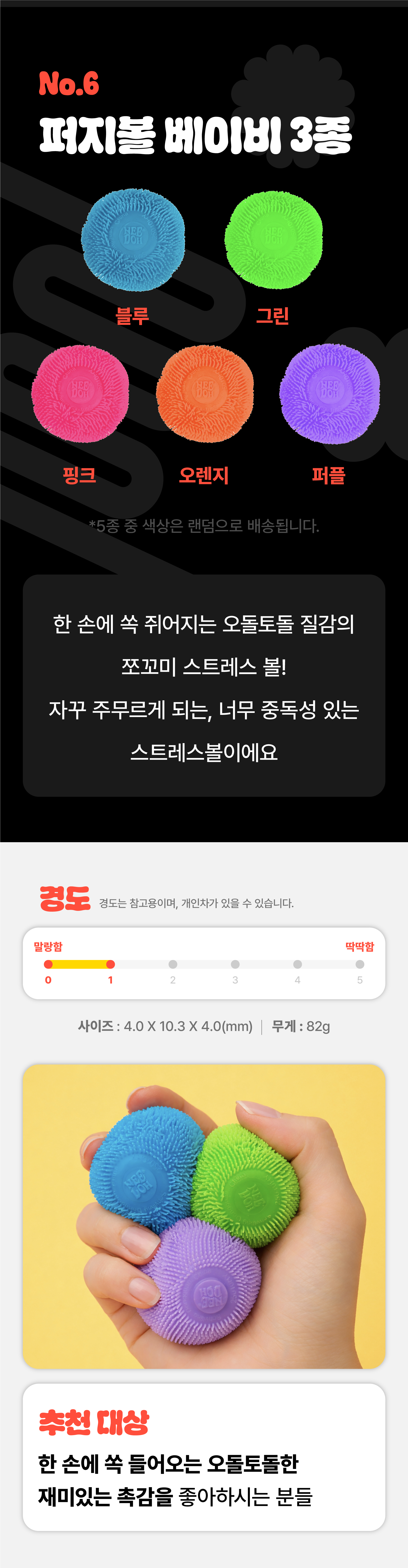 대부분의 스트레스볼(말랑이, 젤리공 등)은 PVC 소재로 만들어져 저렴하고 튼튼하지만, 미세플라스틱 문제로 인체와 환경에 유해할 수 있는 우려가 있습니다.