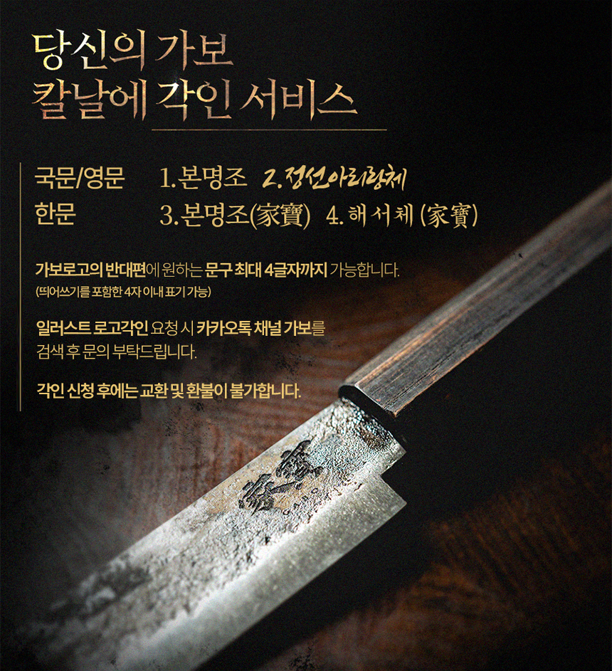 가보의 칼은 소모품이 아닌 쓰면 쓸수록 더 빛을 발휘하는 명품 칼 입니다.