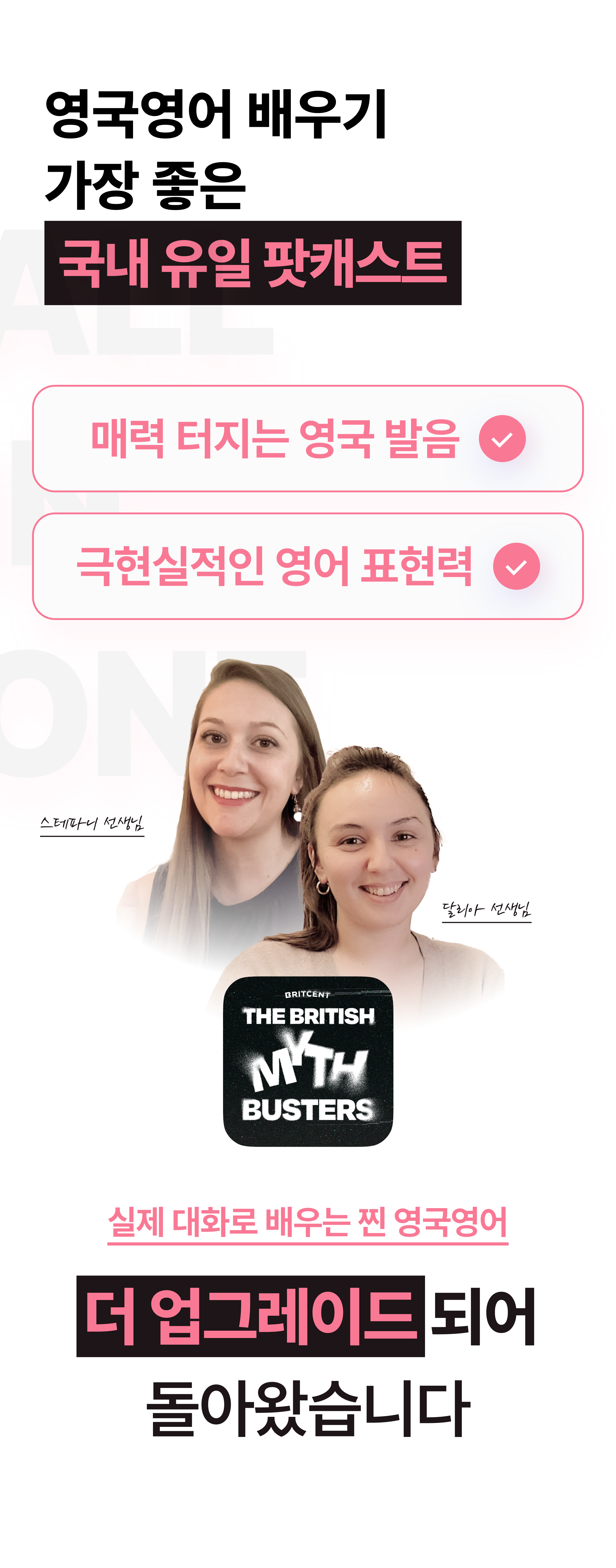 가장 자연스러운 영국영어를 배울 수 있는 국내 유일의 콘텐츠라고 자신합니다.