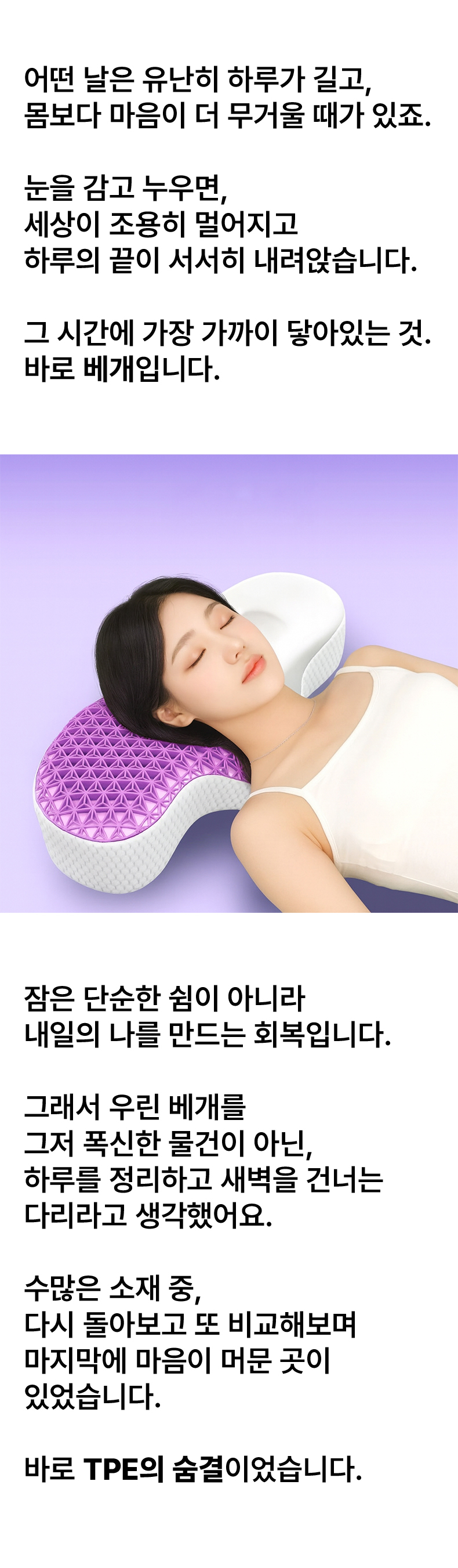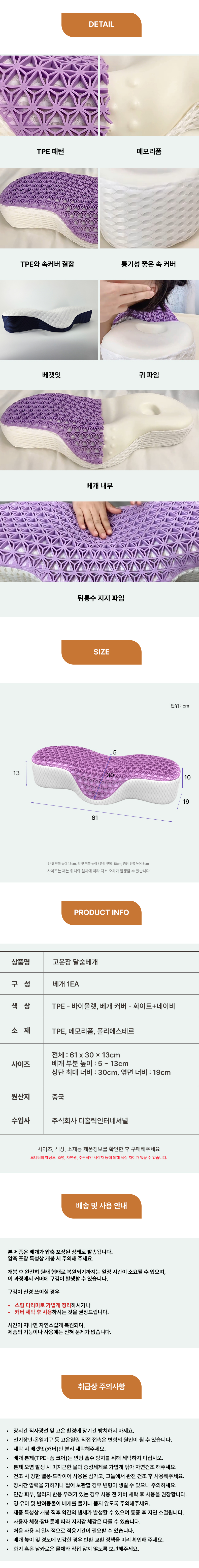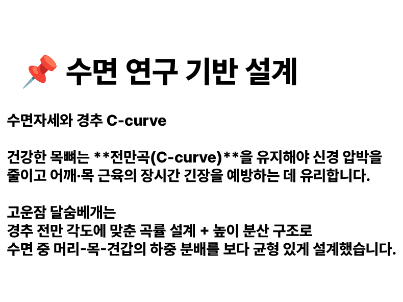 1. 🛏️ TPE+메모리폼 이중 설계 베개 - 경추 C-커브 맞춤 인체공학적 곡률 설계 2. 🌙 편안한 숙면과 목 지지력 강화 - 목의 곡선을 따라 지지력과 복원력 균형 제공 3. 🎁 세련된 커버 포함 편리한 관리 - 화이트+네이비 커버, 지퍼 탈착 세탁 가능