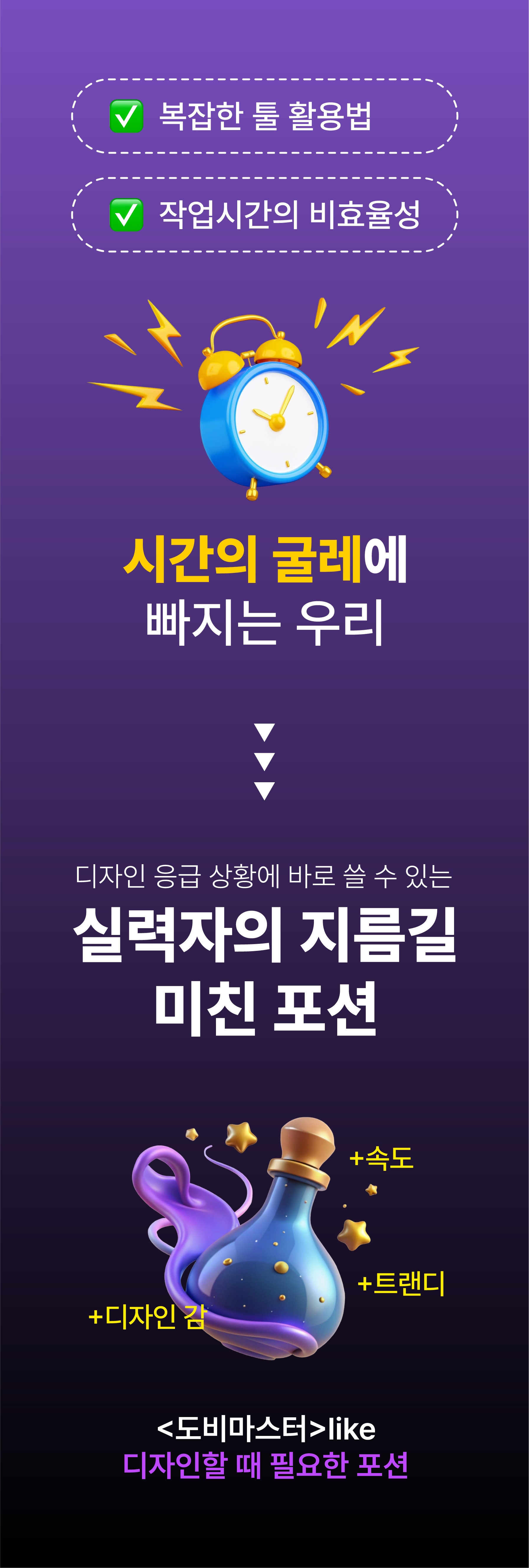 <도비마스터>를 통해 쌓아온 시간과 고민, 그리고 디자이너의 현실적인 어려움을 해결하고자 했던 아이디어는 누군가에게는 공감과 응원이 필요한 이야기라고 믿었습니다.