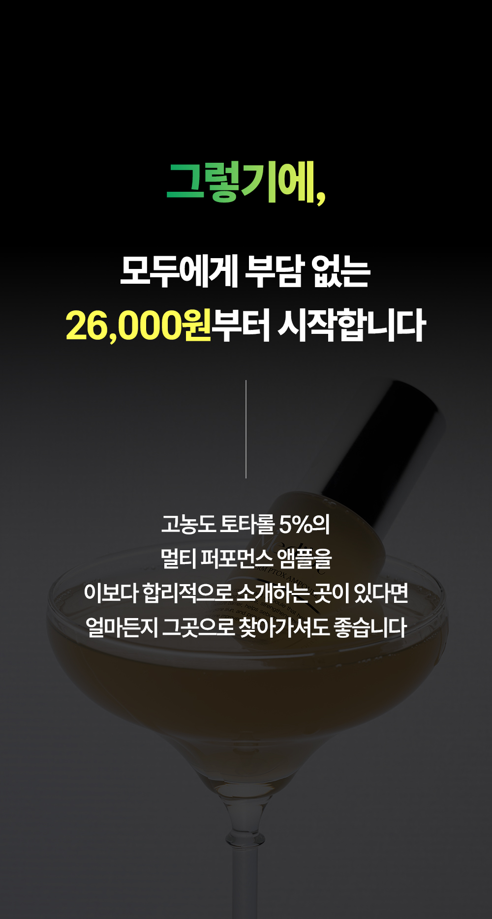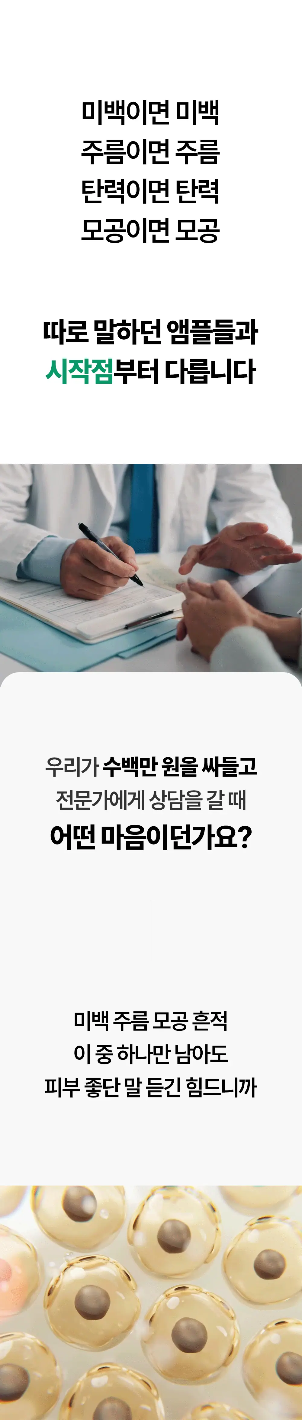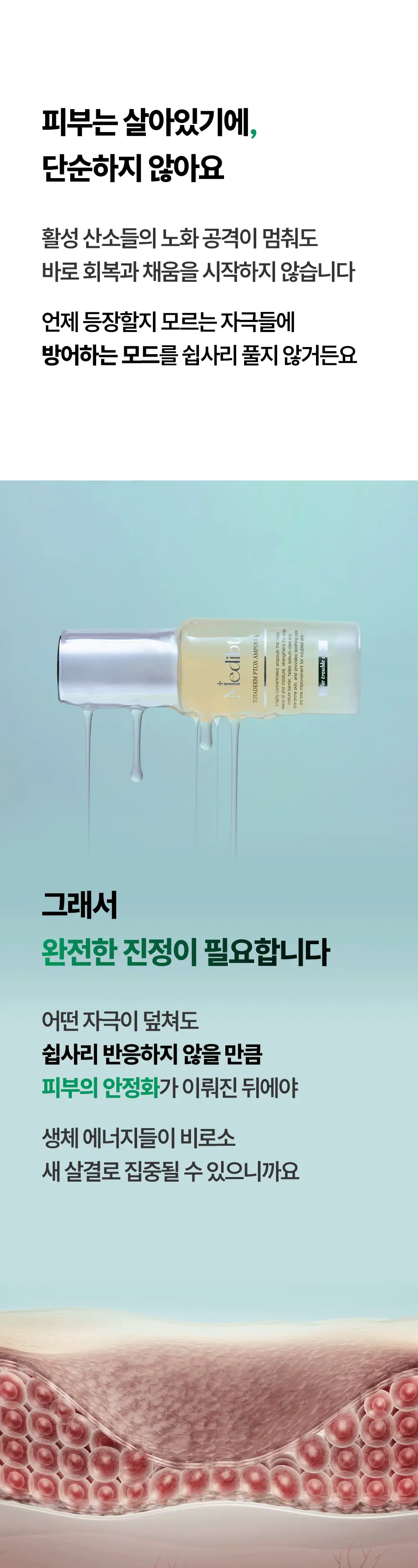 메디비티의 대답은 간단합니다. 매일 할 것처럼 샀지만 결국 일주일에 한 번 하면 많이 한 게 되는 디바이스보다 누가 뜯어 말려도 매일 두 번은 꼬박꼬박 바르는 스킨케어의 힘을 믿는다고요. 이런 메디비티와 뜻을 같이 해주시는 분들이 모인 와디즈에서 또다시, 새로운 앰플을 선보입니다.