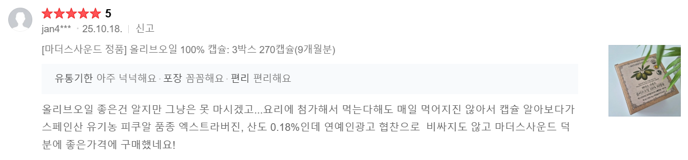 가장 저렴한 올리브유 캡슐을 공개합니다.