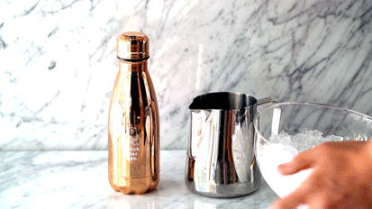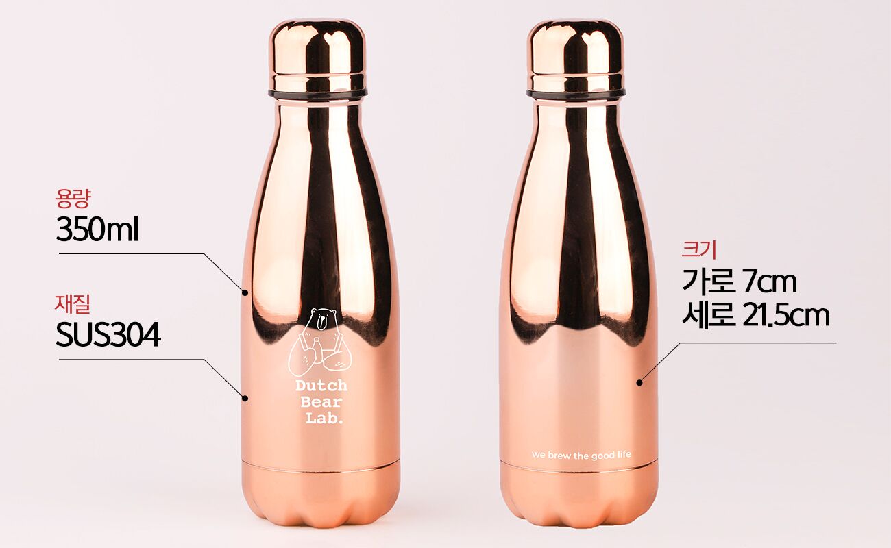 냉기가 오래 유지되는 기능성 스테인레스 보틀 텀블러. 한 손에 착 감기는 마성의 그립감. 가방에 아무렇게나 넣고 다녀도 새지 않아요. 로즈골드 도금으로 고급스러움을 더했습니다.