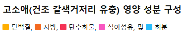 그 중에서도 고소함이 매력적인 고소애(갈색거저리 유충)는 건조 상태 기준으로 약 50% 이상의 단백질을 포함하고 있어 소고기, 돼지고기보다 높은 수준의 단백질을 제공합니다.