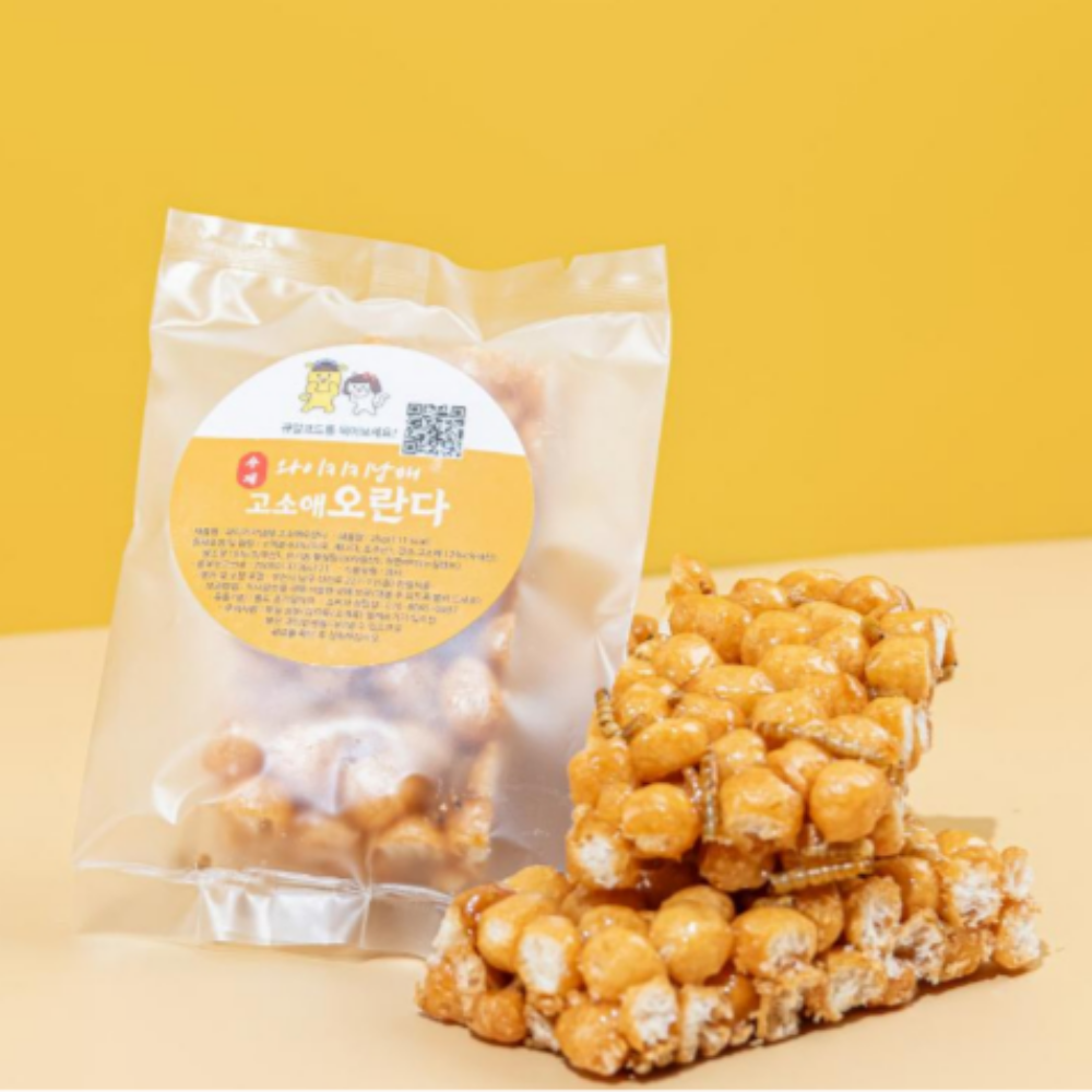 고소애빵에 앞서 두 번째 펀딩에서 선보인, 콩알만한 과자와 식용곤충 고소애가 바삭하게 어우러진 와이키키남매 '고소애오란다' 1박스(8개입)를 추가로 드립니다.✨
