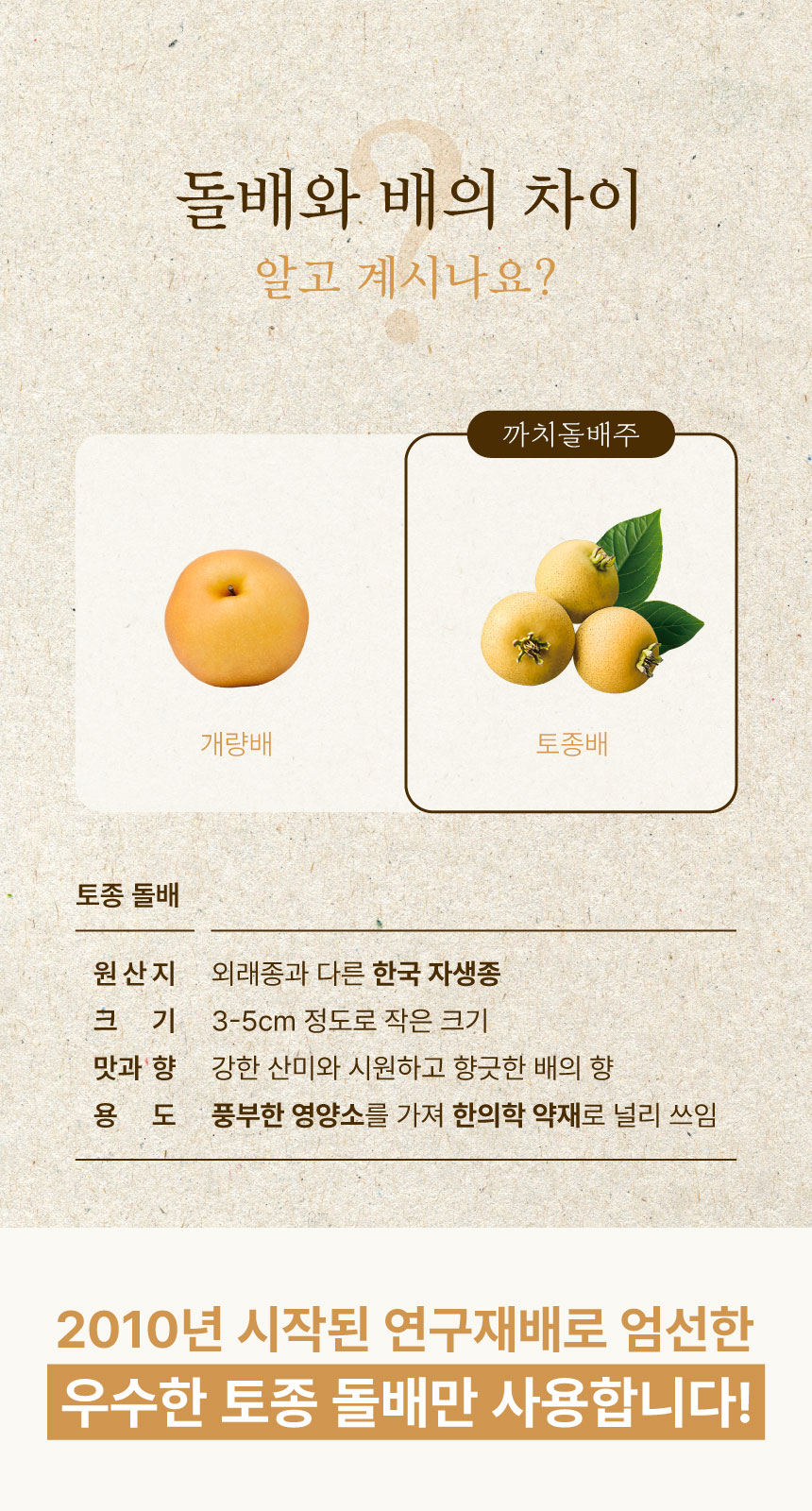 유기농으로 직접 재배한 돌배만을 고집하고