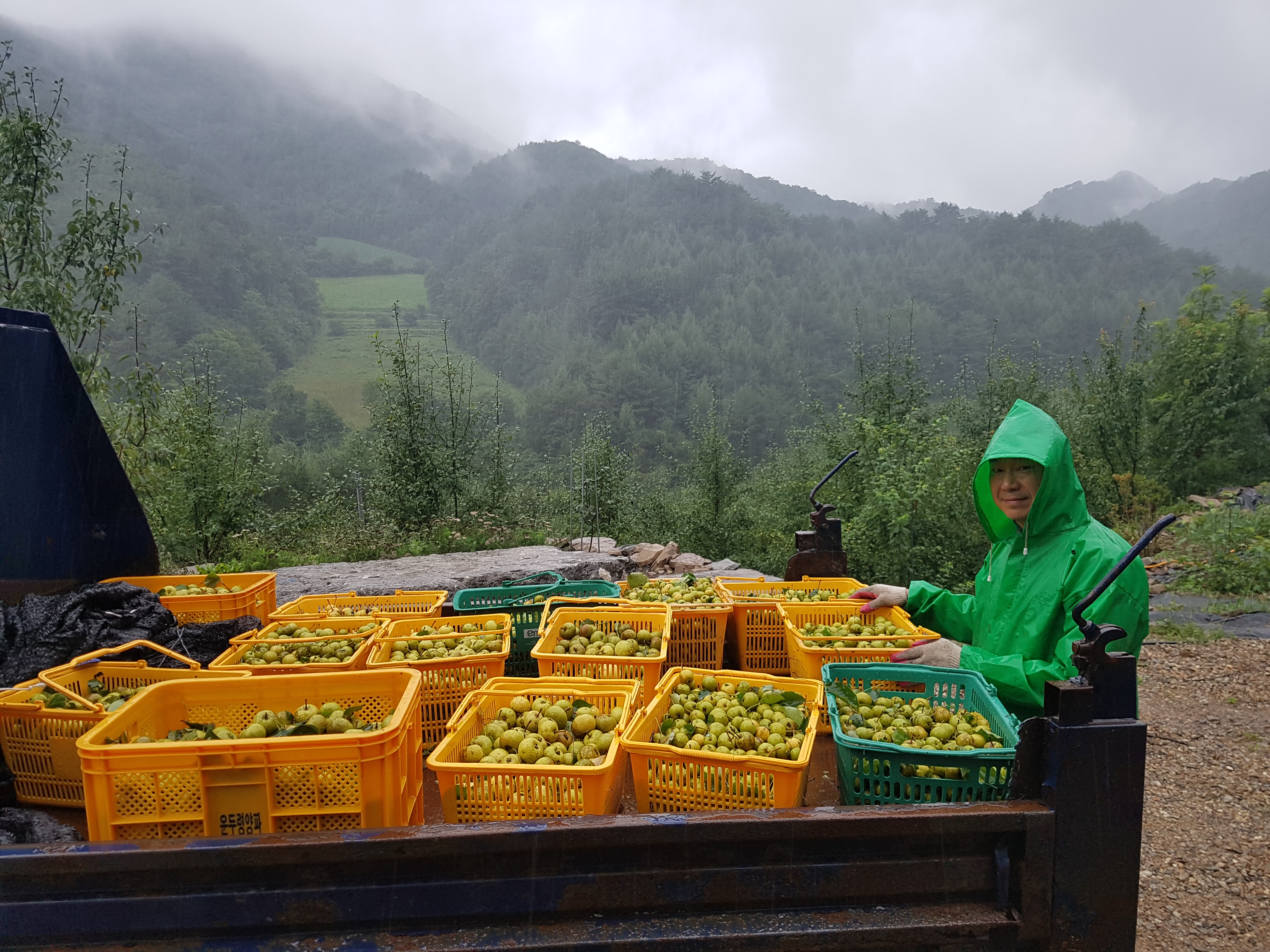 양질의 돌배만 선별, 세척하고