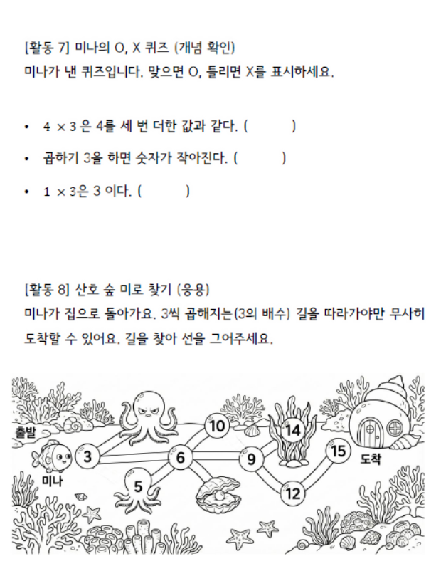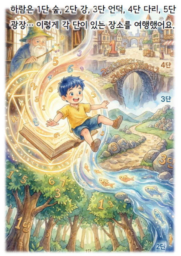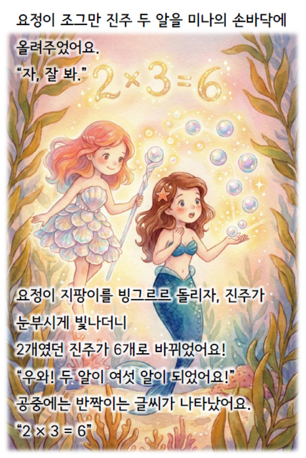 그래서 저는 [전자도서(PDF) + 움직이는 영상(Motion Graphic) + 활동지(Worksheet)]를 결합했습니다. 제가 직접 설계한 탄탄한 수학적 커리큘럼 위에, 생성형 AI 기술을 활용해 아이들의 시선을 사로잡는 환상적인 삽화와 살아 움직이는 영상을 입혔습니다.