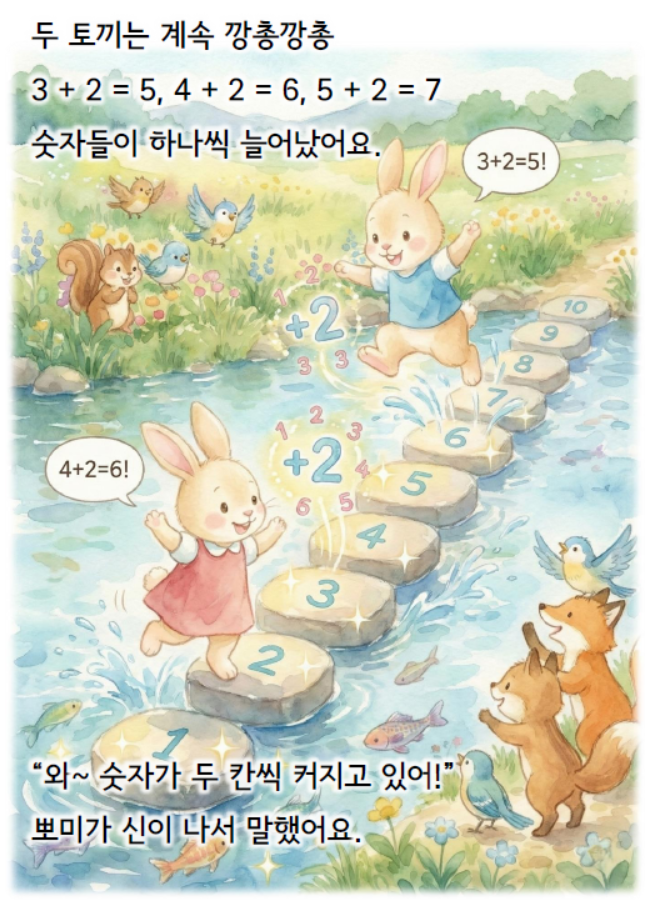 원리 중심: "1+1=2야, 외워!"가 아닙니다. "왜 2가 될까?"를 스토리 속 갈등 해결 과정을 통해 자연스럽게 체득하게 합니다. 아이들은 동화를 읽었을 뿐인데, 어느새 수학 원리를 남에게 설명할 수 있게 됩니다.