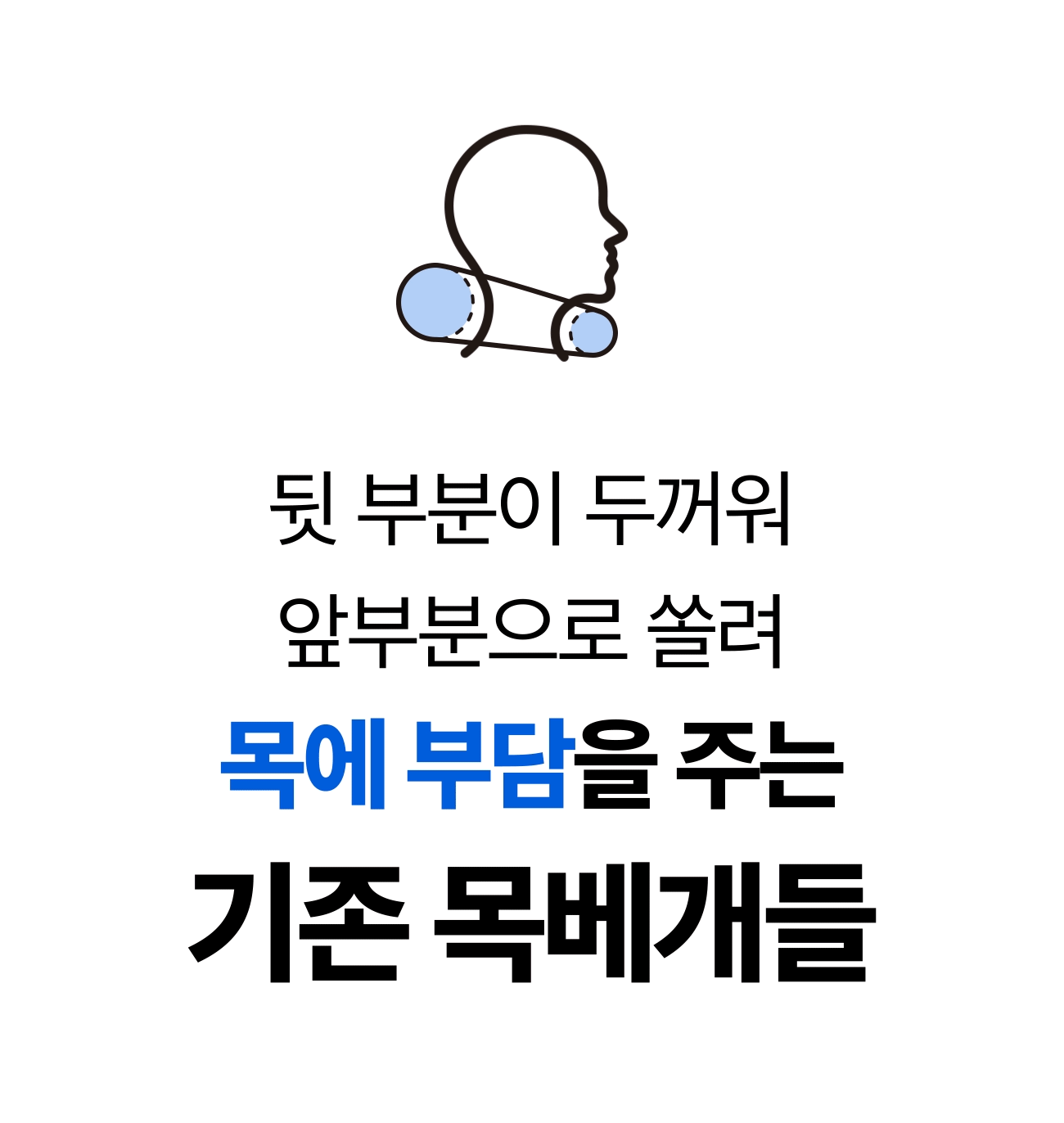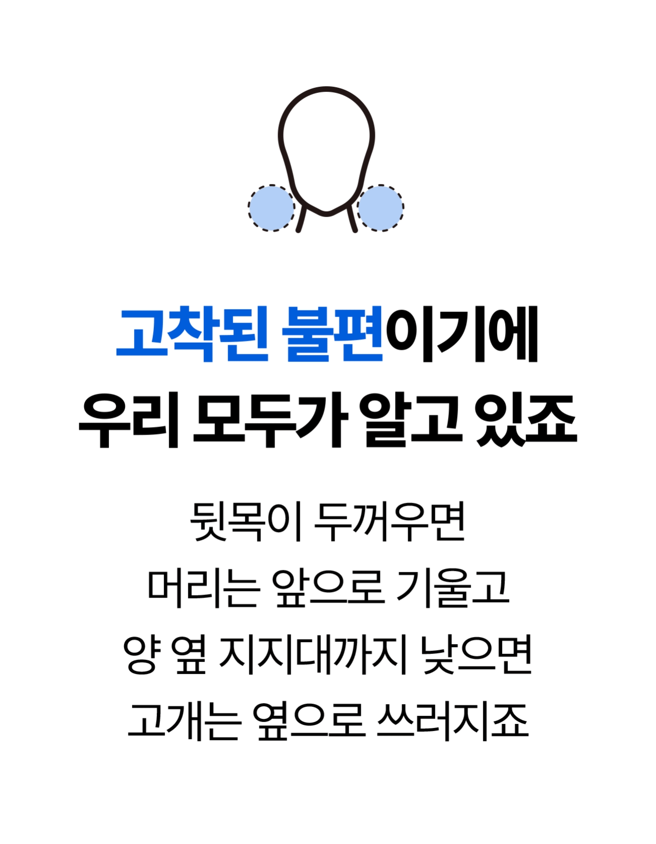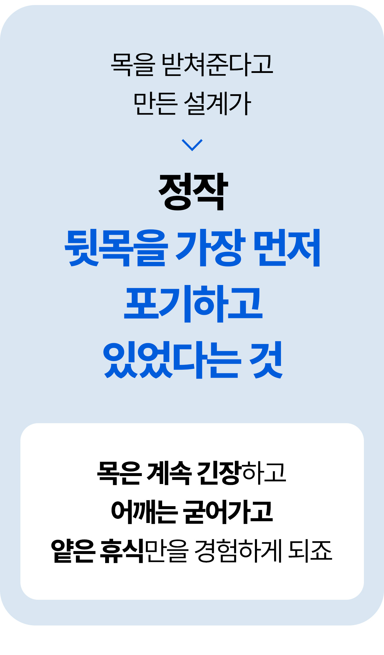- 장시간 사용 시 목 압점을 줄이기 위한 쿠션 각도 보완