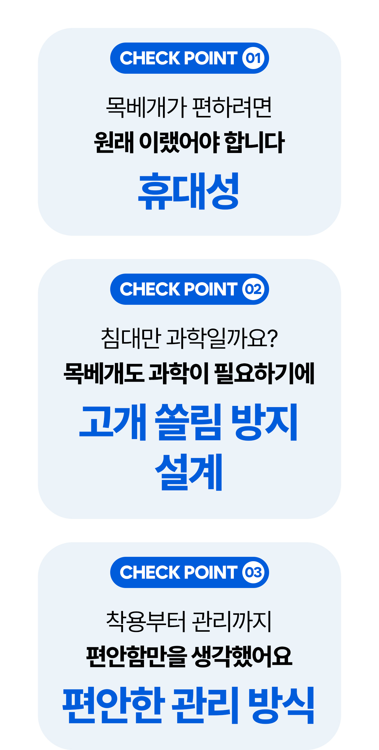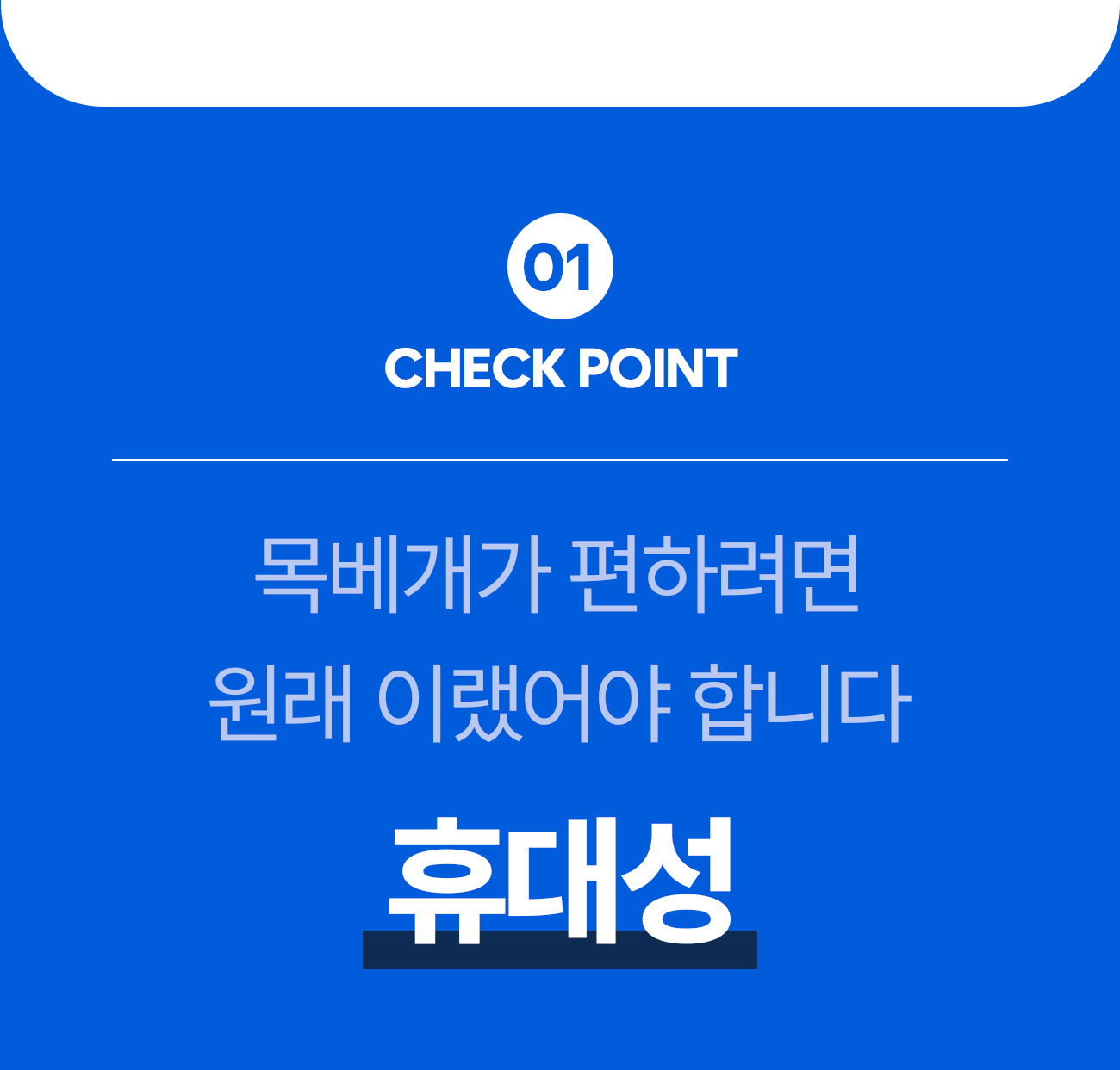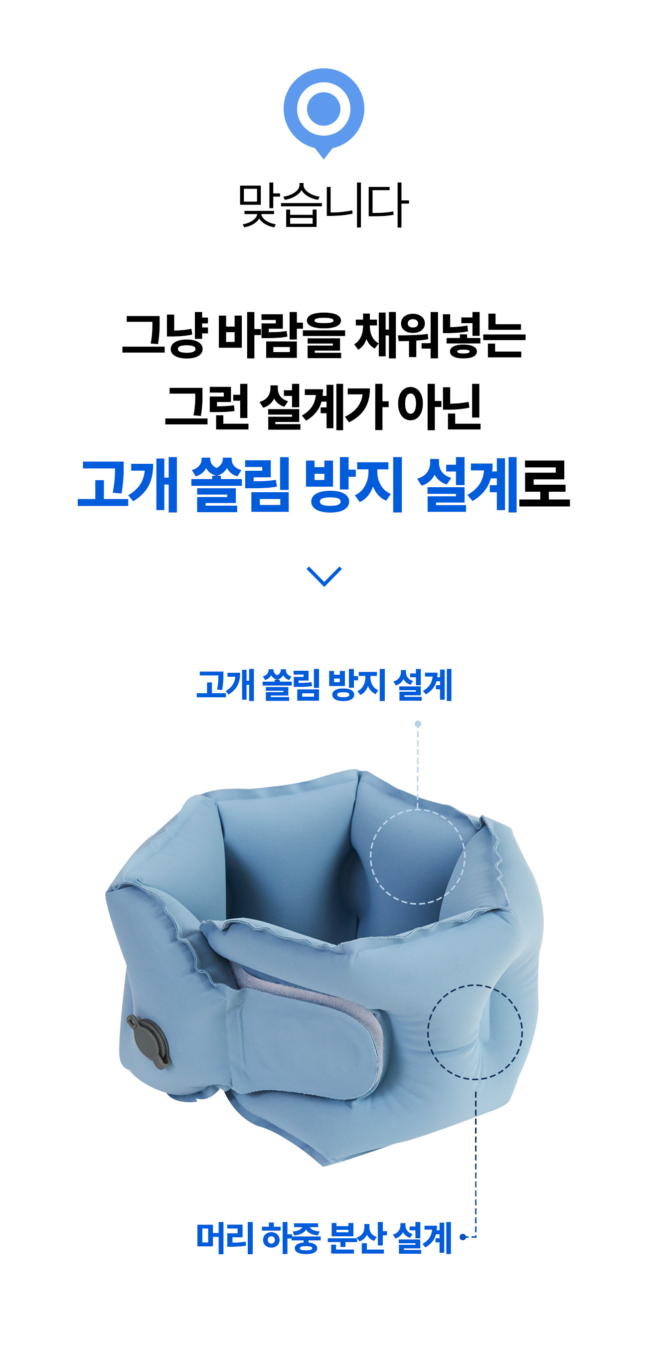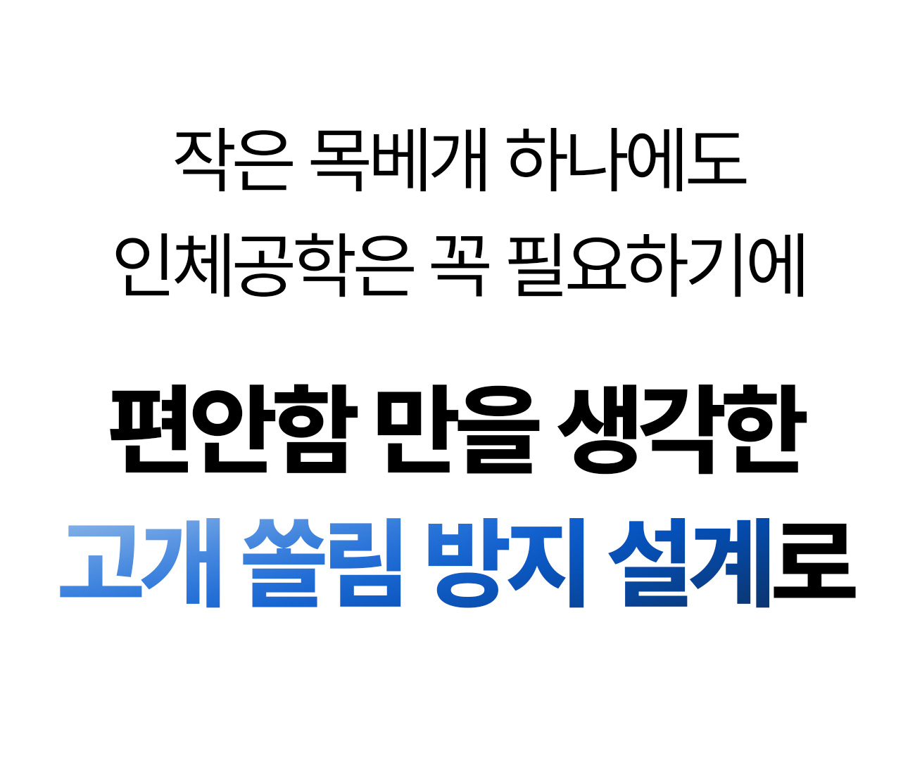 - 장시간 사용 시 목 압점을 줄이기 위한 쿠션 각도 보완