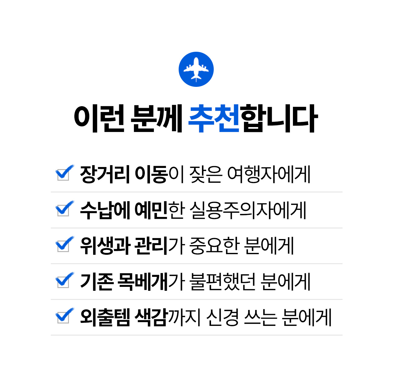 가방에 넣는 게 부담스럽지 않고, 필요할 때 바로 꺼내 쓸 수 있고, 잠깐의 휴식을 정말 편안하게 만들어주는 제품. 우리는 이 제품이 특별한 여행용품이 아니라 자연스러운 일상의 루틴이 되기를 바랍니다.