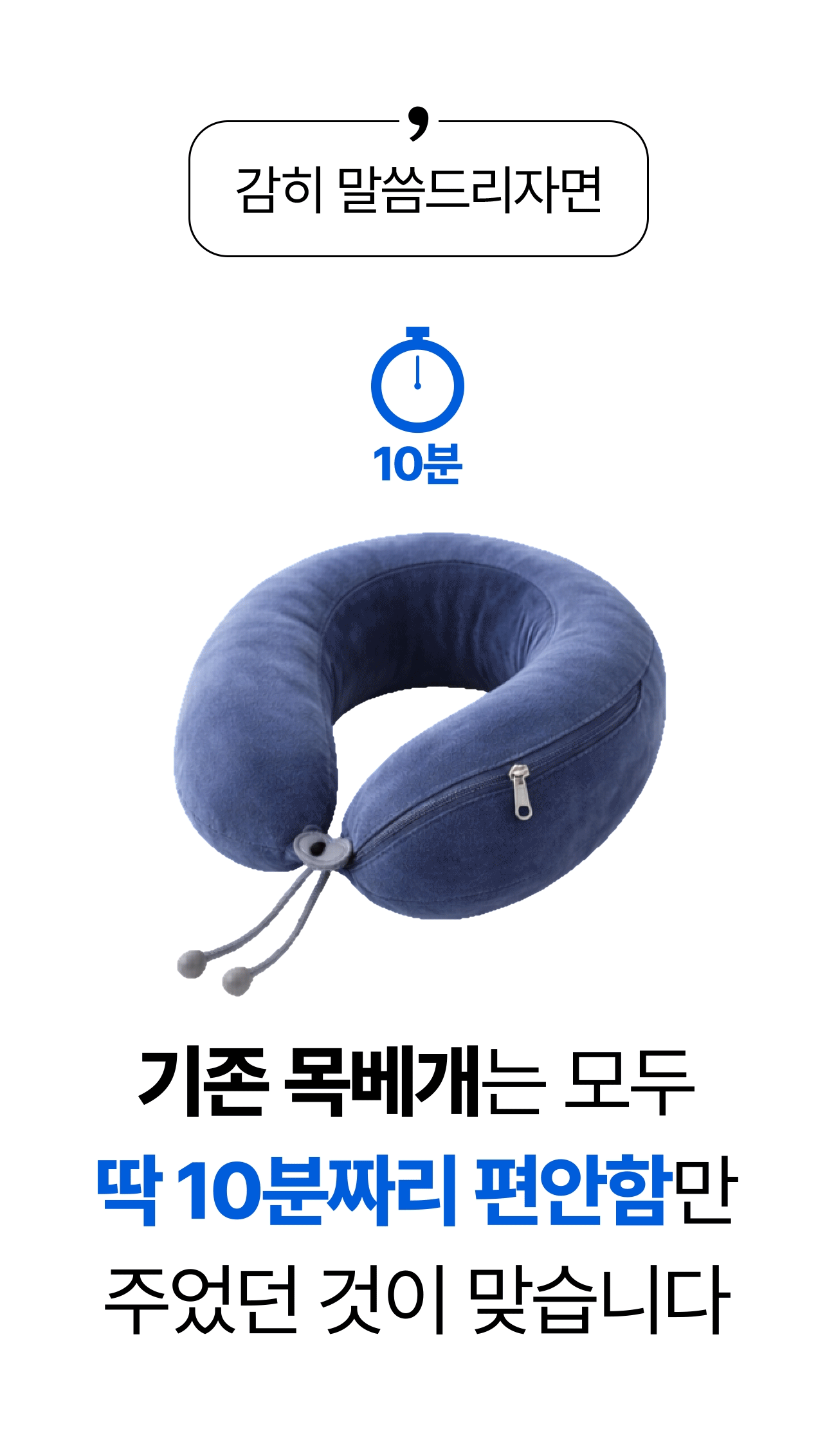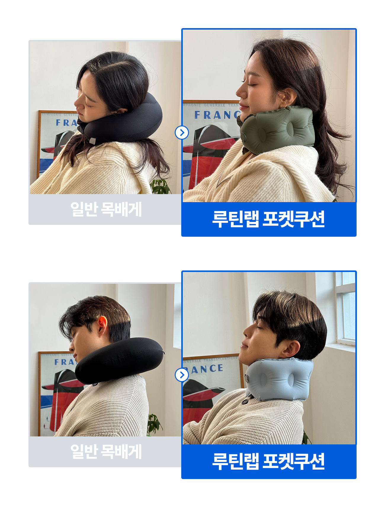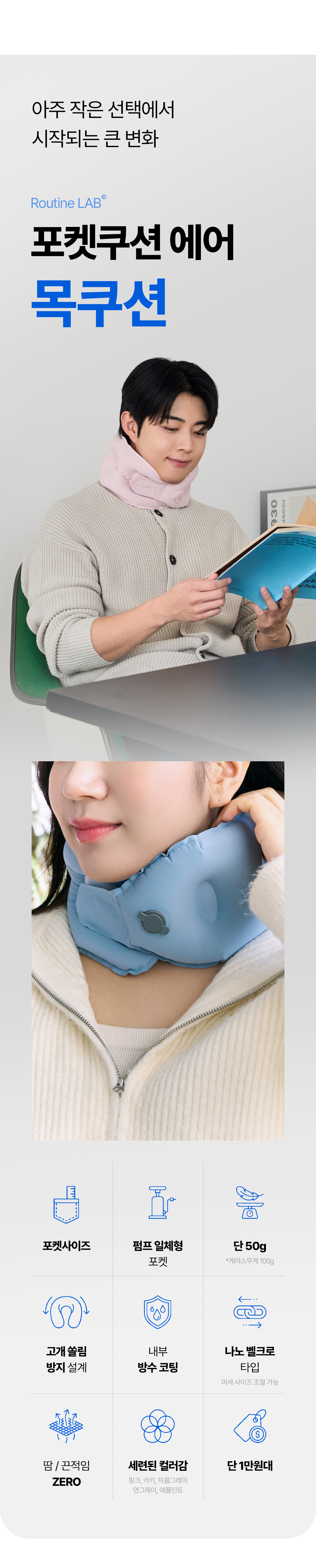 그래서 루틴랩의 첫 제품은 ‘간편함’과 ‘가벼움’에 집중한 에어 목쿠션으로 시작합니다.