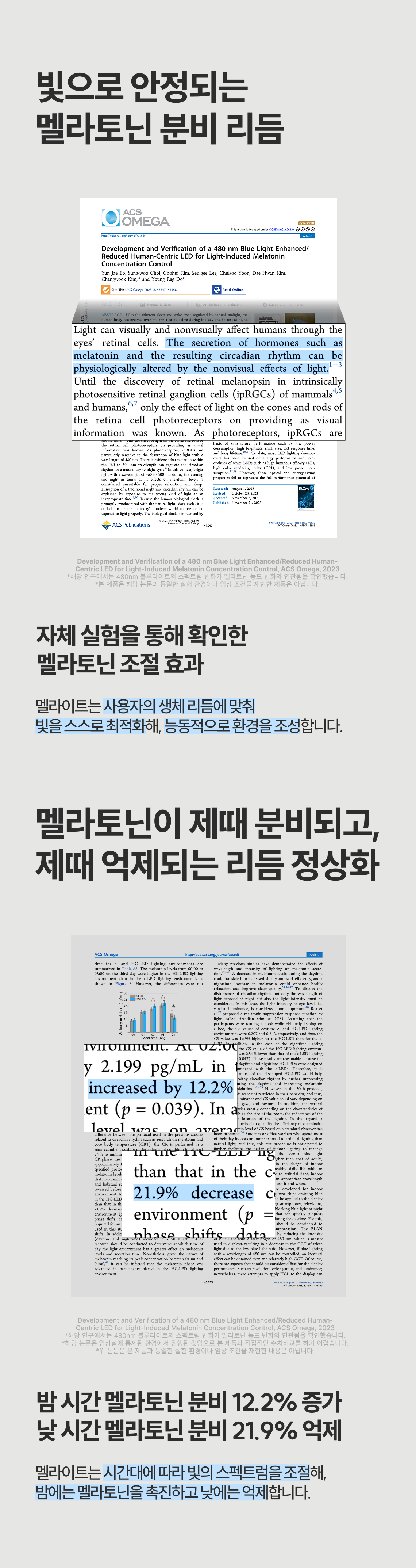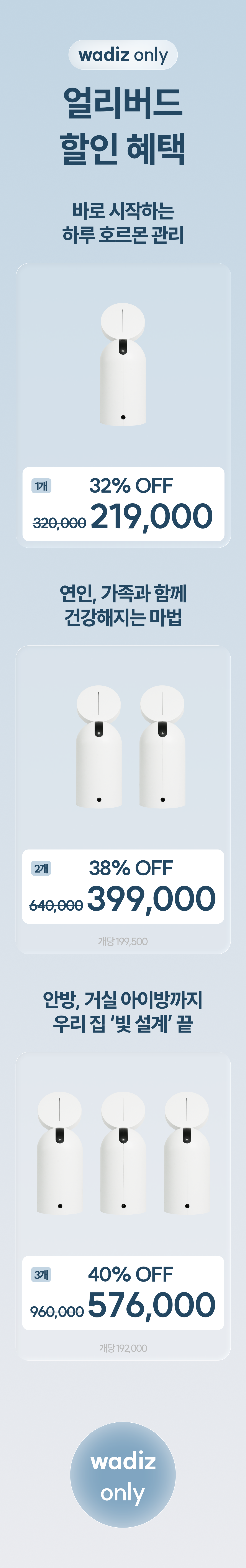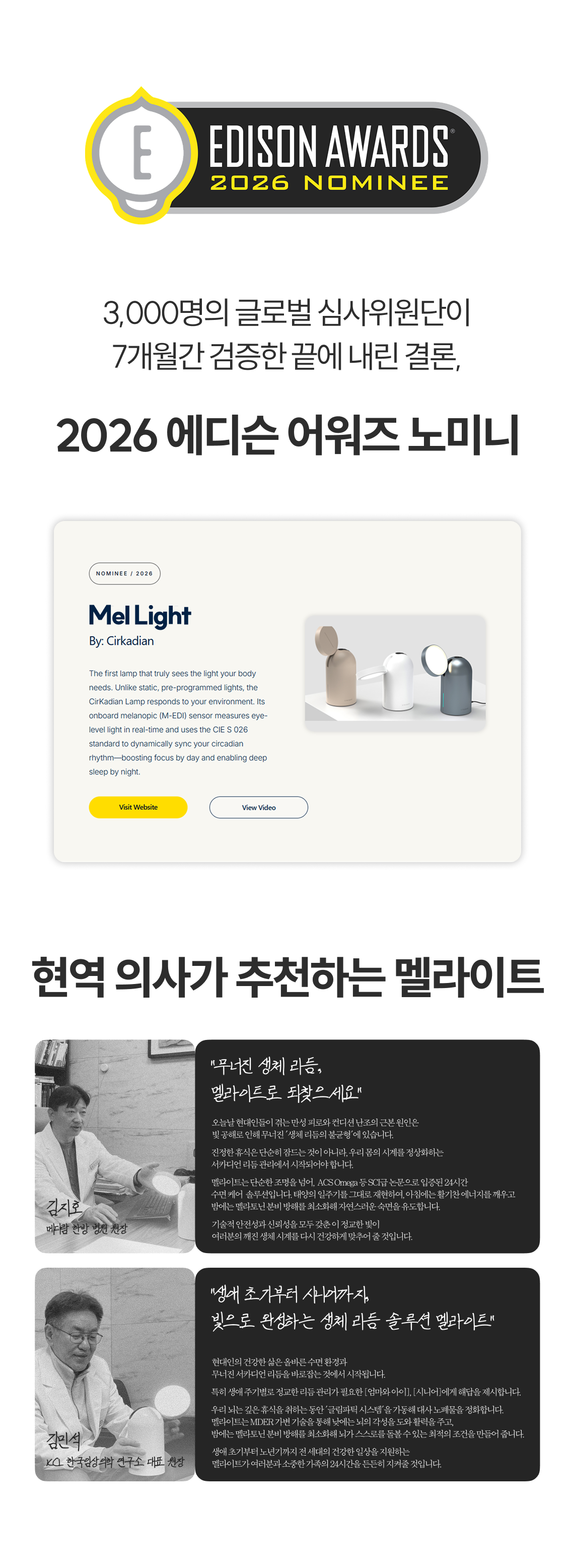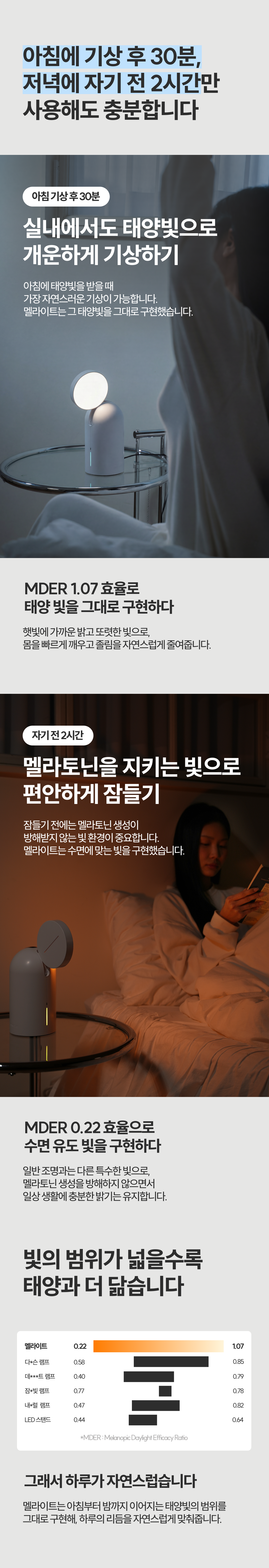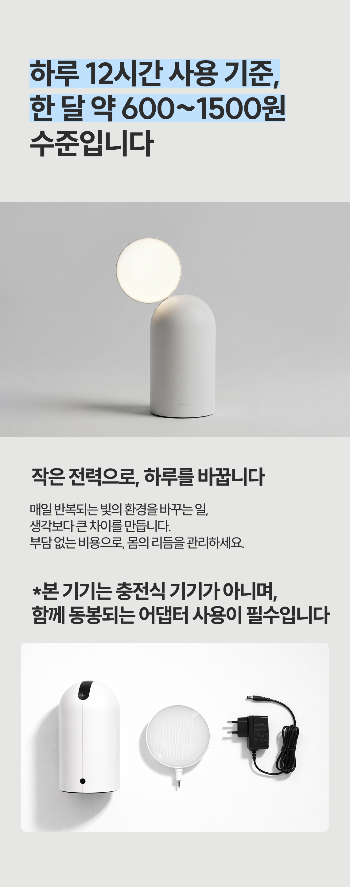 1. 💡 생체 리듬 맞춤형 스마트 조명 - 기상, 각성, 공부, 휴식, 수면 모드 제공 2. 🌙 멜라토닌 분비 조절 수면 솔루션 - 빛으로 자연스러운 수면 유도 및 리듬 복원 3. 🎁 한정 수량 슈퍼얼리버드 할인 - 와디즈 단독 50개 한정 약 38% 할인 제공