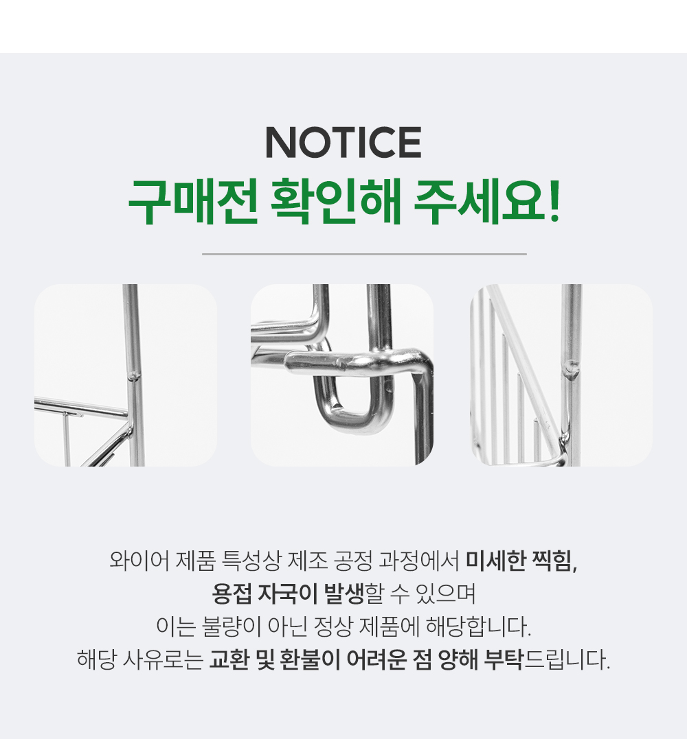 ㆍ스테인리스 전해연마 제품 특성상 세척 얼룩이 남아있을 수 있습니다. 가벼운 세척 후 사용하시기 바랍니다.