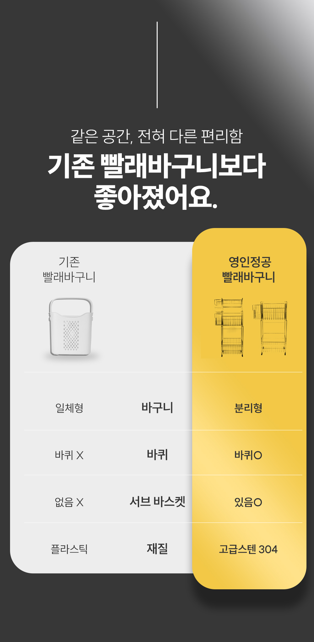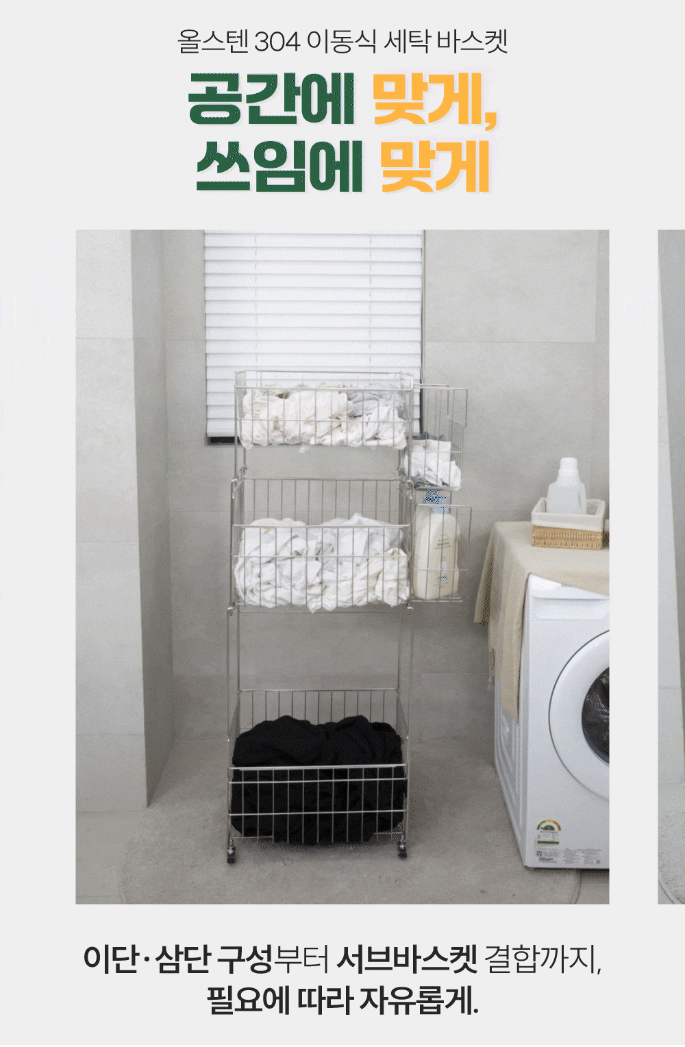 안녕하세요 저희 영인정공에서는 서포터님들께 그동안 다양한 프로젝트로 여러번 인사를 드렸었는데요! 서포터님들께 항상 좋은 상품으로 인사 드리고자 '갓성비 올스텐 304 이동식 세탁 바스켓 2/3단 풀세트' 를 와디즈에서 진행하게 되었습니다.