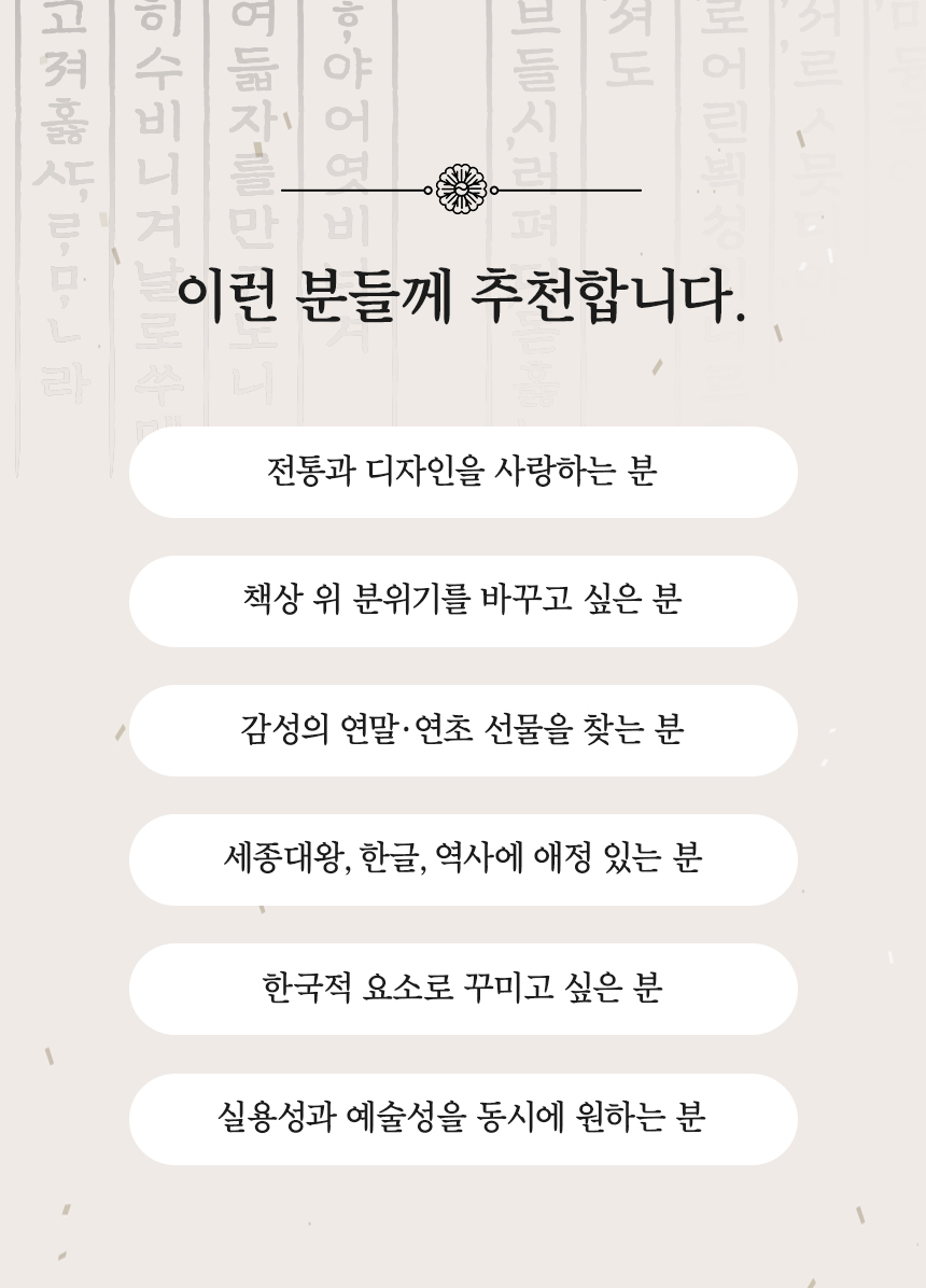 이 프로젝트를 통해 ‘대한민국을 담은 물건’이 어떤 기준과 마음으로 만들어져야 하는지 서포터님들께 선보이고자 합니다.