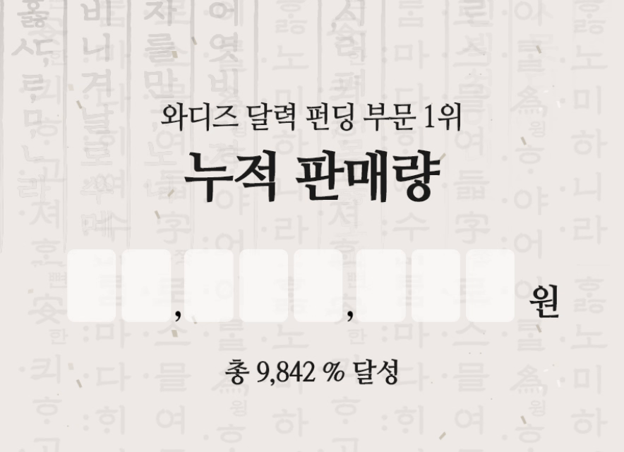 와디즈 펀딩은 ‘대한민국을 담은 물건’을 함께 만들어 가는 과정이 되기를 바랍니다.