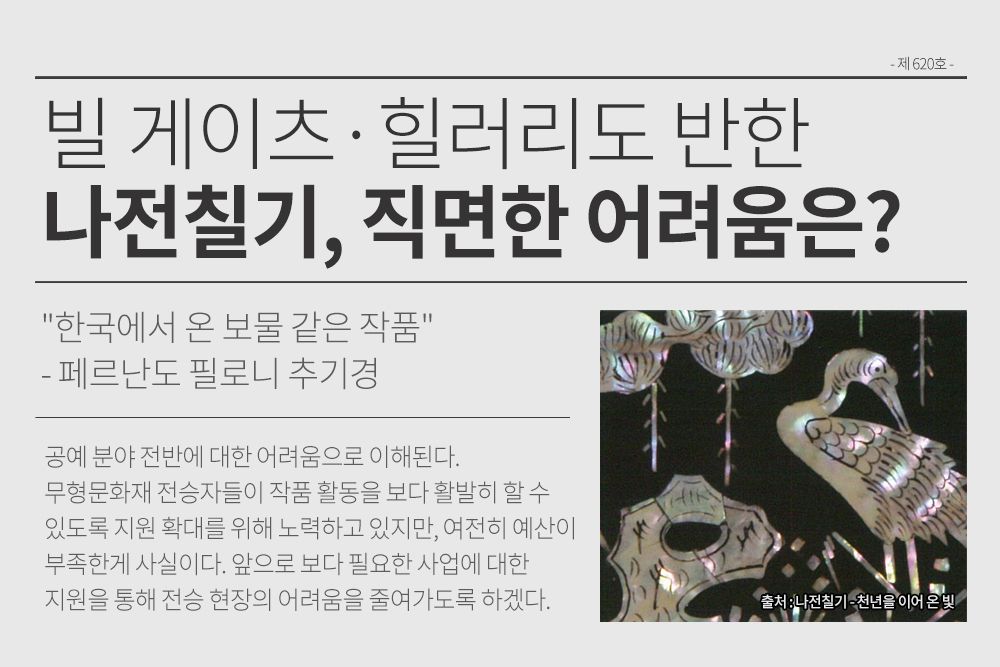 미적 감각과 함께 힘과 기술을 요하는 나전칠기는 동양 삼국 중 제일로 꼽히죠.